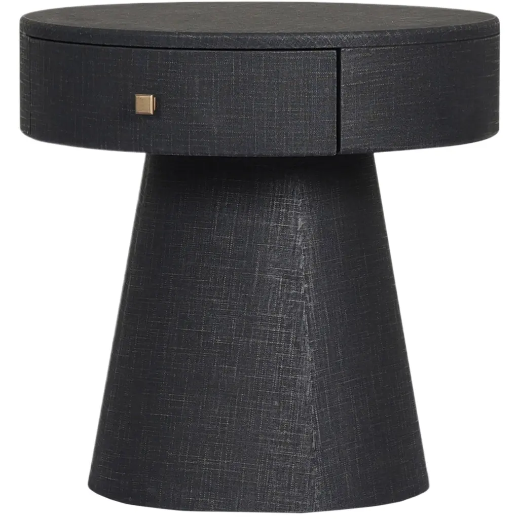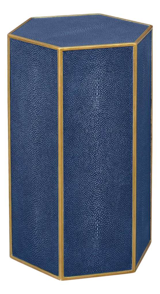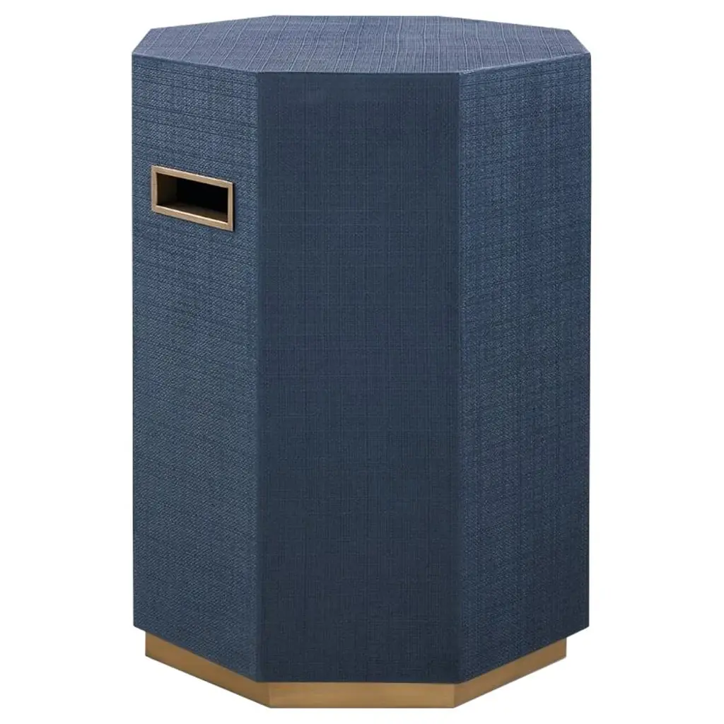 Octavia Storm Blue Linen Brushed Brass Octagonal Side Table