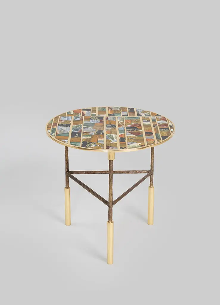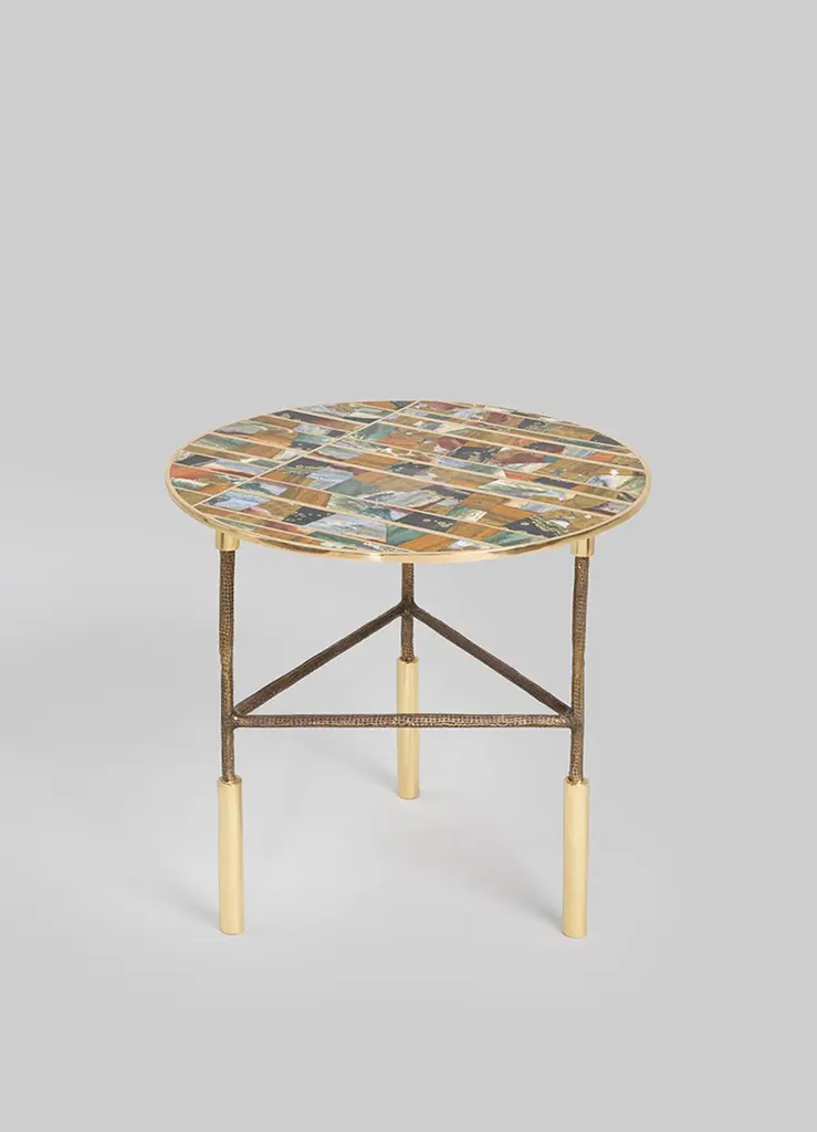 Odeon Side Table In Brass & Semi Precious Stone, Viya By Vikram Goyal
