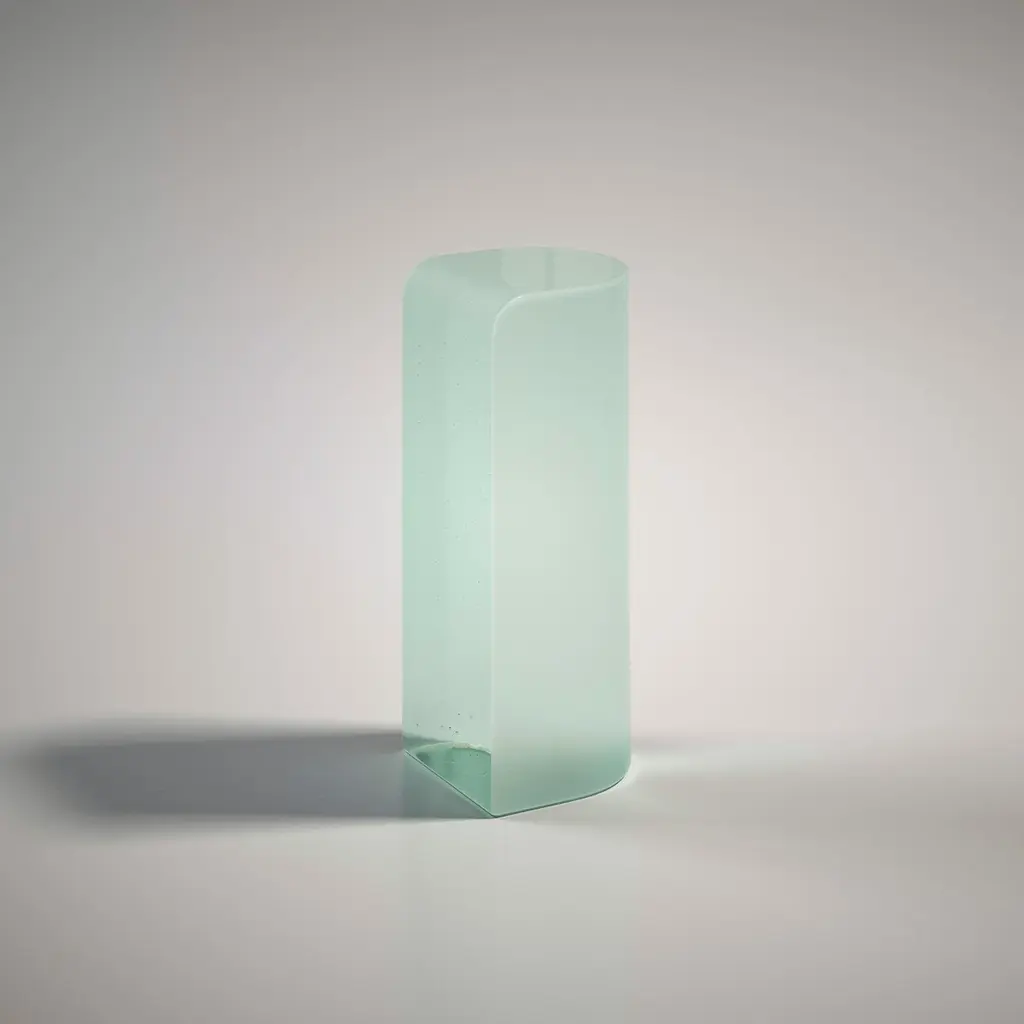 A cast glass sculpture that serves as a side table. Polished and partially frosted, it evokes melting ice, urging awareness and action for a sustainable future. This listing is for a table in green glass.Standard size:7.9” x 7.9" x H 19.7” About Fred&Juul:Fred&Juul stands for Federico Minarelli and Julie Janssen, an Italian-Dutch architects’ duo based in Tuscany, Italy, that designs contemporary pieces, handcrafted by local artisans from traditional materials like brass, stone and solid wood. What sets them apart is that their designs value the inherent nature of these materials and how they are meticulously crafted, like the grainy, clouded surface of their Raffaele light in sandcast brass or the juxtaposed Oak grains in the marquetry of their Maurits table. With these aspects starring in the story of each of their pieces, their uniqueness goes beyond being merely one-of-a-kind.Fred&Juul’s design philosophy is aimed at sustainability and contrasting the throw-away society by creating pieces that will last, both for their exceptional quality and for their timeless appearance. The result is a contemporary collection that celebrates the refined artistry of centuries old Italian craftsmanship.
