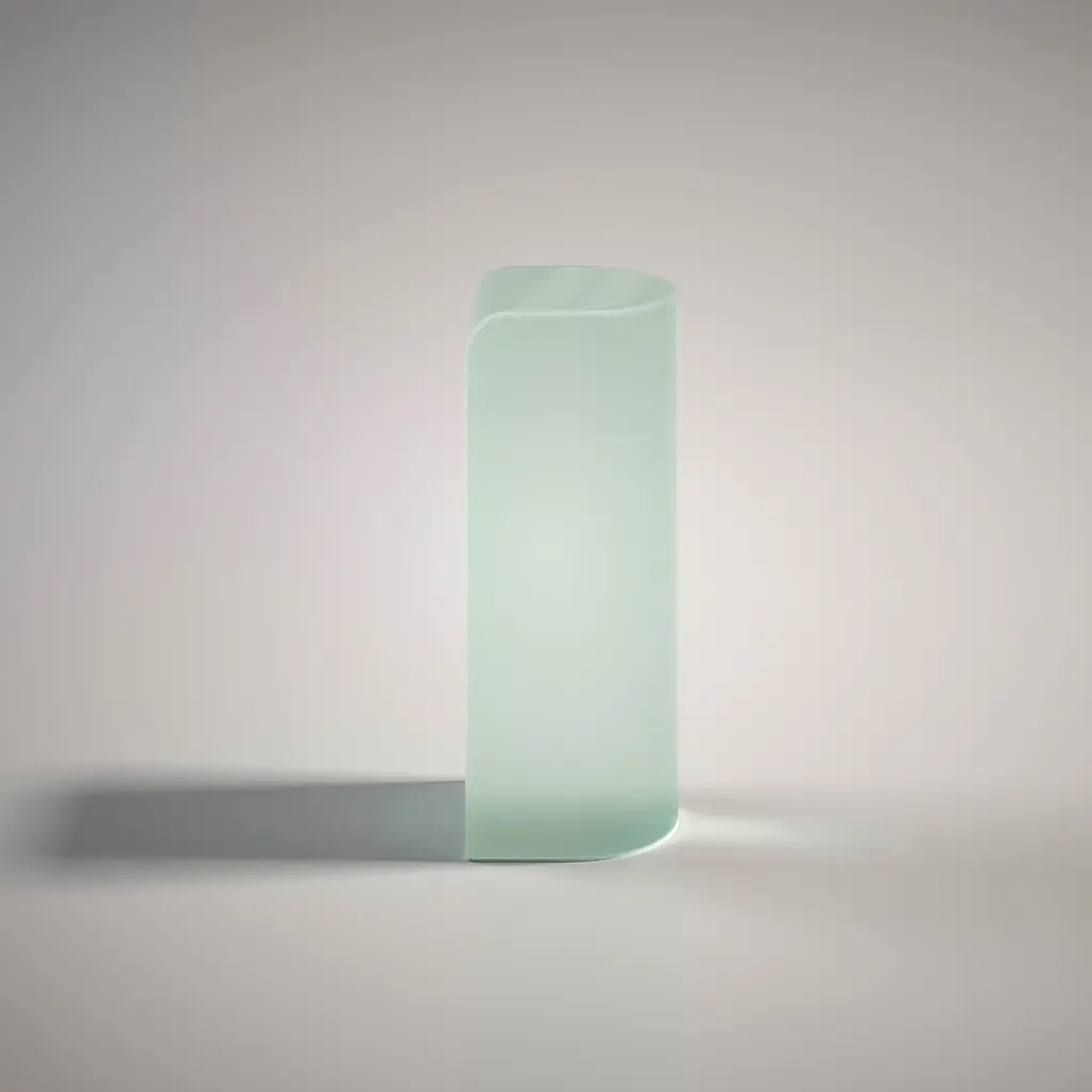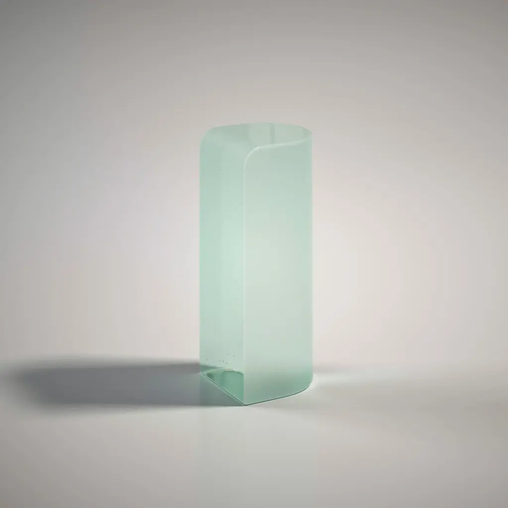 A cast glass sculpture that serves as a side table. Polished and partially frosted, it evokes melting ice, urging awareness and action for a sustainable future. This listing is for a table in green glass. Signed by Maker