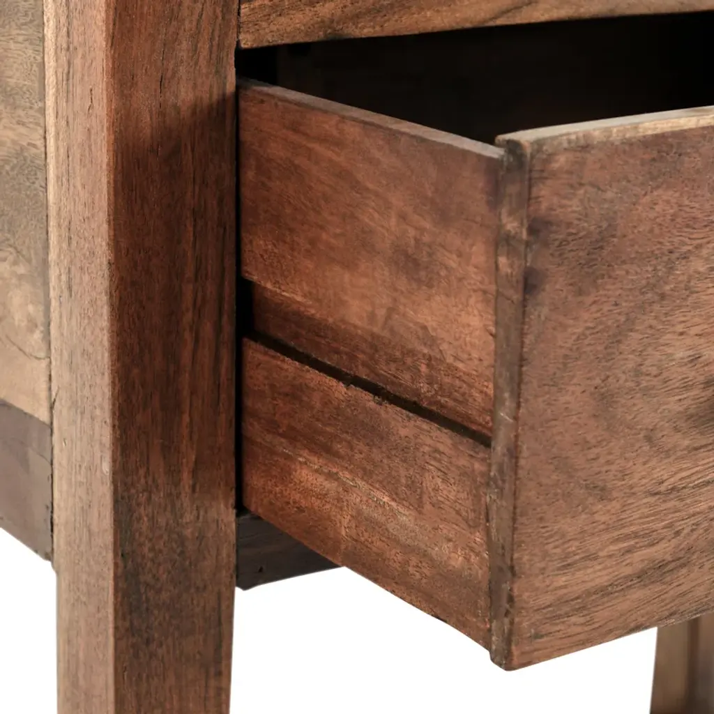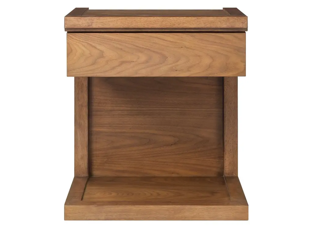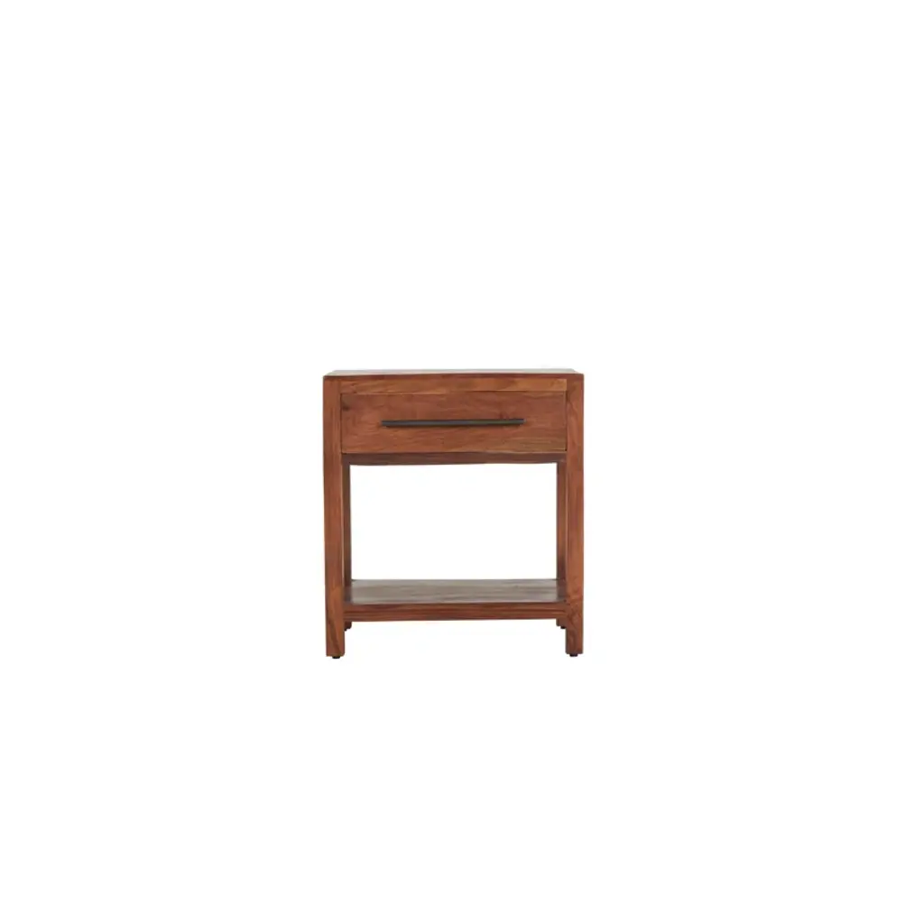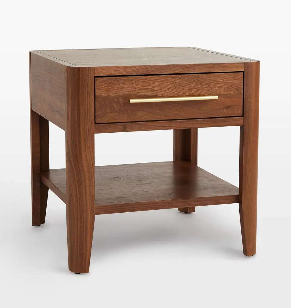 This modern, solid wood end table, inspired by vintage designs, effortlessly blends with contemporary decor. Featuring both a drawer and shelf, it offers a stylish solution for keeping your essentials close at hand.