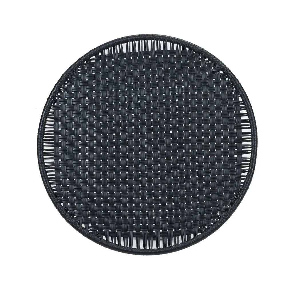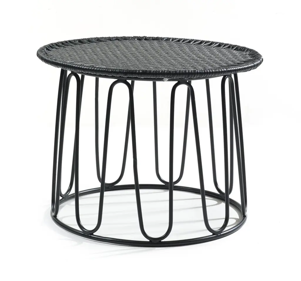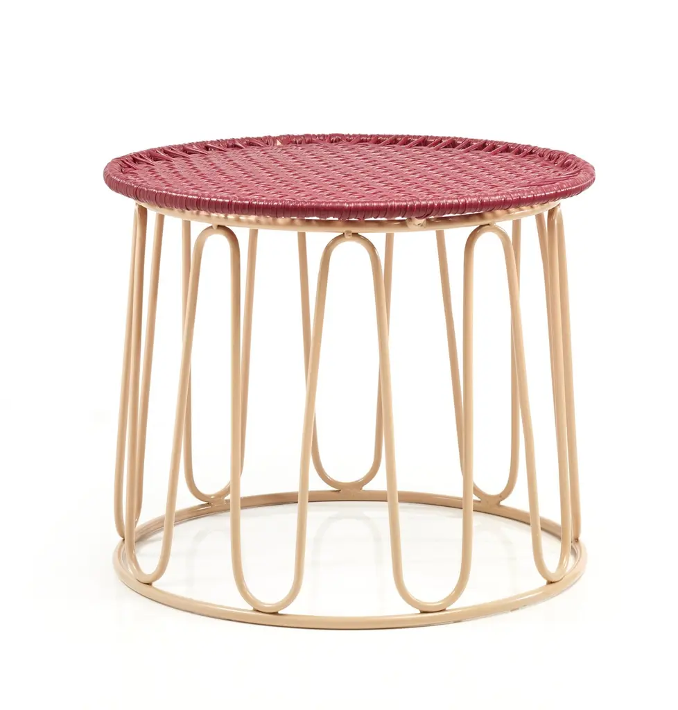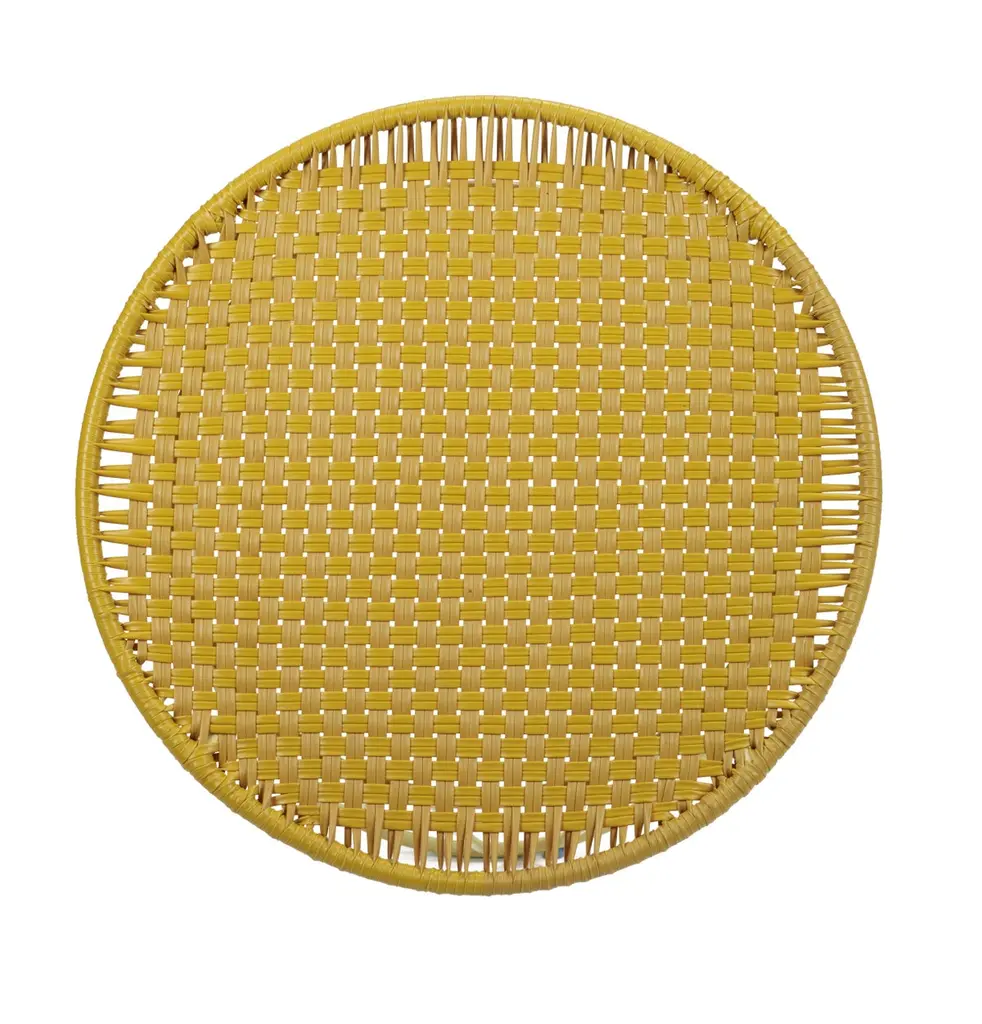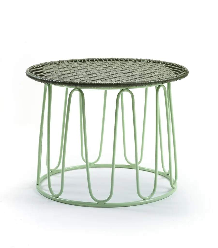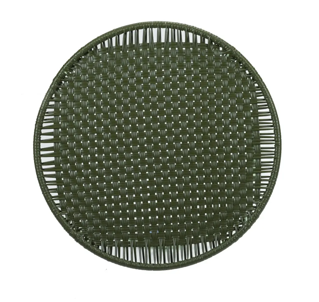 Olive circo side table by Sebastian Herkner.Materials: Galvanized and powder-coated tubular steel. PVC strings.Technique: Made from recycled plastic. Weaved by local craftspeople in Colombia. Dimensions: Top diameter 55 cm Base diameter 51 x height 42 cm Available in colors: Olive - menta, honey - sand, purple - carne, black matt - black.Featuring gentle curves and vibrant colors, the round Circo Side Table adds a touch of colorful elegance to indoor and outdoor spaces. A design by Sebastian Herkner, the table is an ode to Colombia's vibrancy and passion for colors. The piece combines an intricate woven tabletop with a powder-coated steel frame in matching or contrasting shades. Each table is made in Santa Marta, a city on the Caribbean coast of Colombia, by local craftspeople. The steel frame is fire galvanized to protect the material from rust and corrosion by bathing it in molten zinc. Afterward, the frame is powder-coated with colored lacquer. The weaving of the table top is done by hand, using the traditional Momposino method. Just the preparation of all the materials takes 20 days, while the production of each table takes two days. German designer Sebastian Herkner is a long-term collaborator of Ames and has visited Colombia multiple times to experience the country’s cities, nature and people first hand. He also visited many of the ateliers that Ames has partnered with to learn about the unique traditional crafts of Colombia's regions. A sought-after contemporary designer and recipient of many industry awards, he has worked with many international design brands, creating intriguing pieces that showcase his intuition for interesting material, color, and texture combinations.