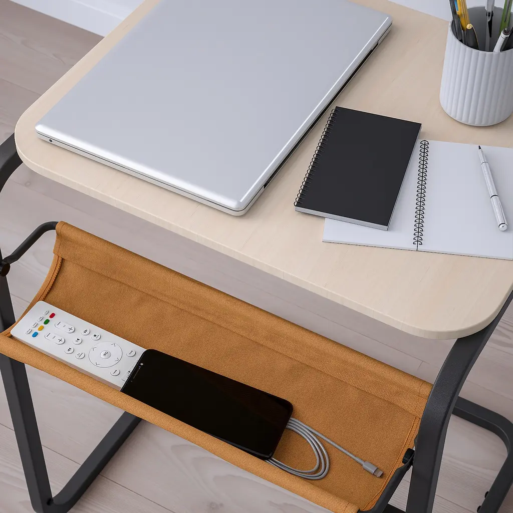 OLSERÖD Side table - anthracite/birch effect dark yellow 20 7/8x19 5/8 ". You can quickly transform this multifunctional table from a slightly higher side table into a lower coffee table to suit all the different activities that take place around the sofa. Max load on table top: 33 lbs.