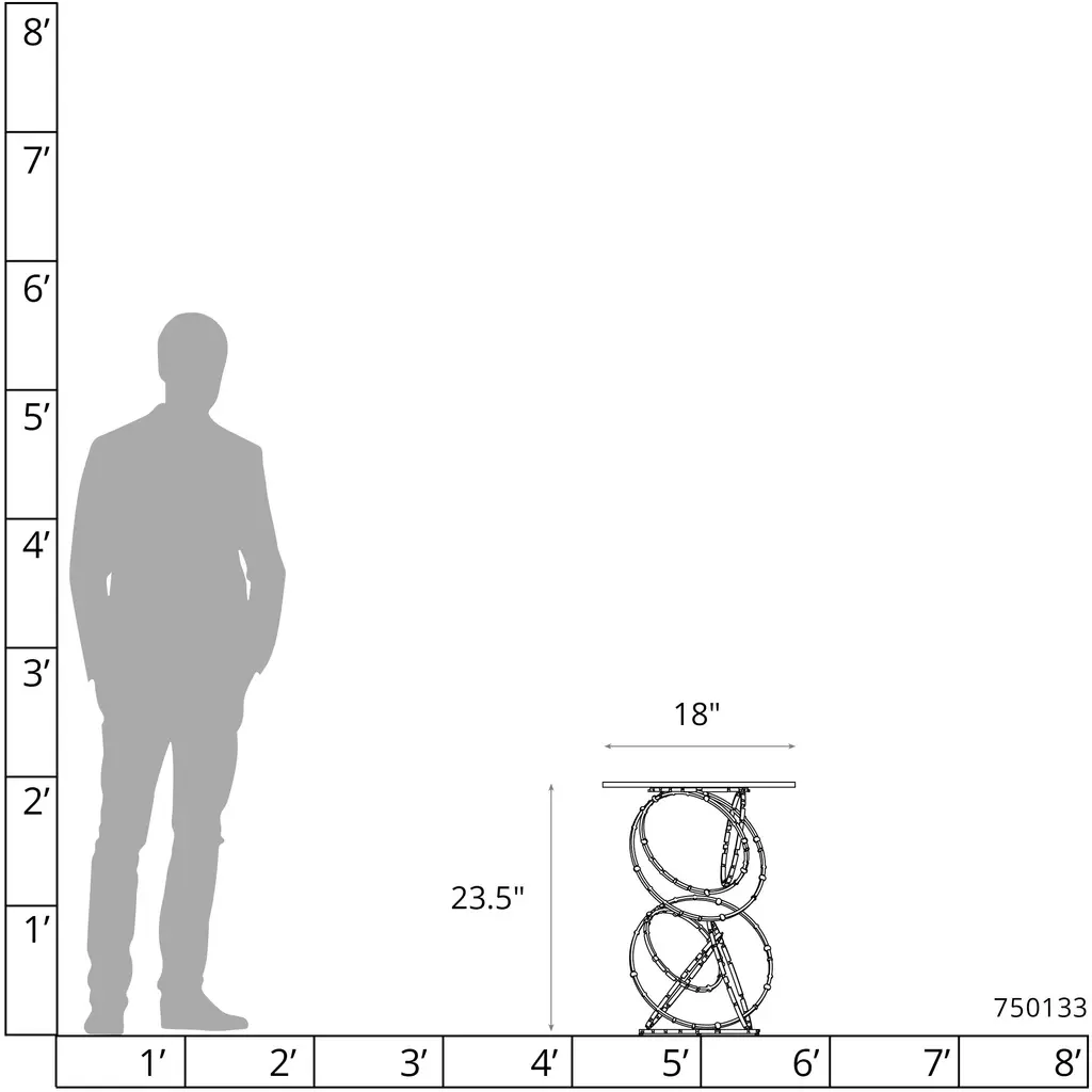 According to the Olympus' designer, David Martin, this is just the kind of puzzle he thrives on. "I was inspired by rings in creating the Olympus Collection." For this Olympus Accent Table, David's background as an Architect had him looking at cascading linear forms, creating movement using multiple rings in different orientations. Viewed through the glass top, the interaction of the hammered and stamped rings is mesmerizing.