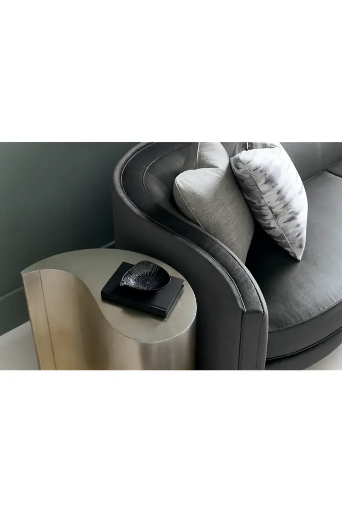 A witty little drink table that promises to stimulate quotable conversations. Use it alone to flaunt its interesting shape or use two that hug each other in a yin and yang configuration to form a single, circular side table. Either way, your guests are sure to be captivated by the table's unique ombre finish that fades from a warm silver to elegant gold.