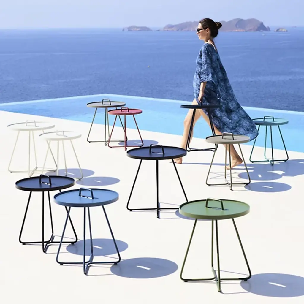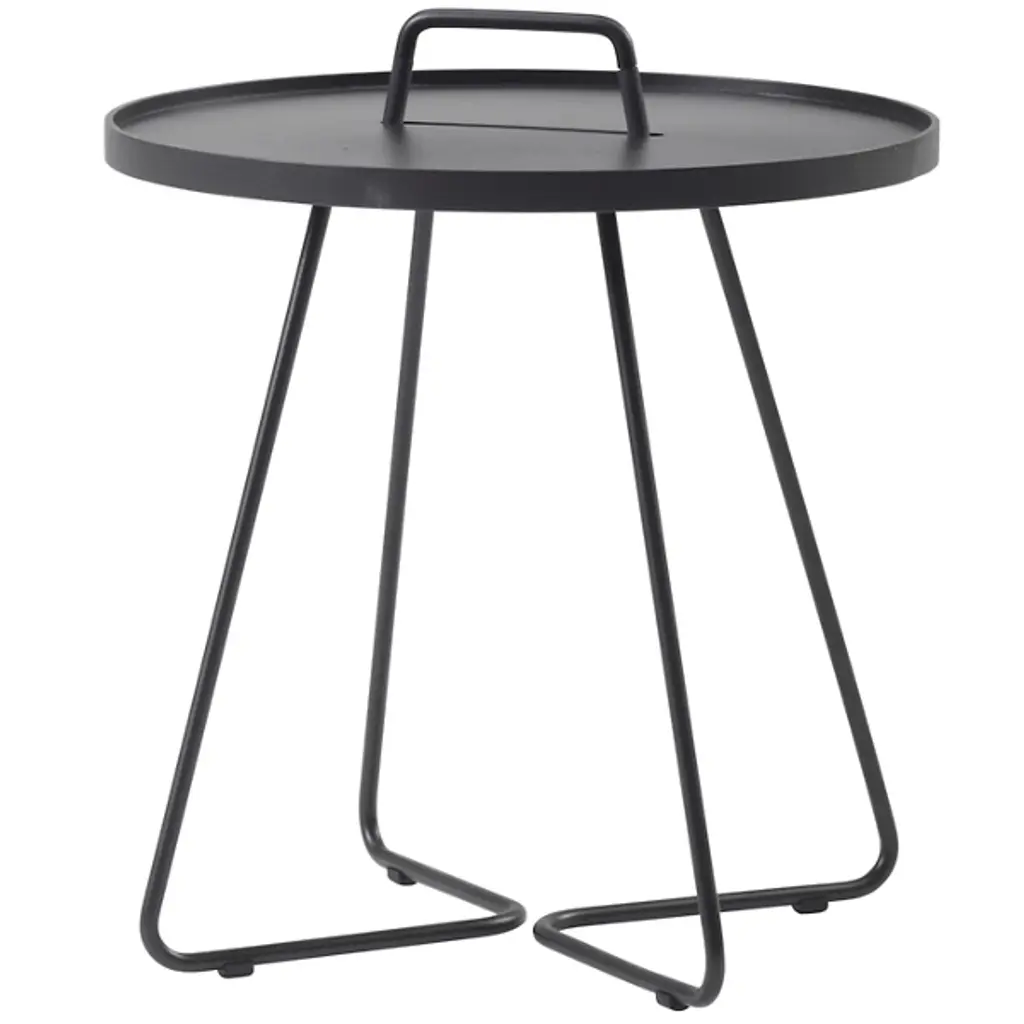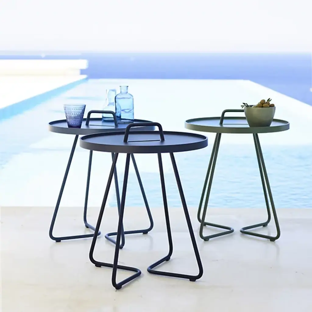 Lightweight, stylish and colorful, you'll want to take the Cane-line On-The-Move Outdoor Side Table with you everywhere you go. Each of its two main components pulls double duty. The tubular aluminum frame culminates in a carrying handle, while the tabletop is actually also a removable serving tray. Available in your choice of color and size.
