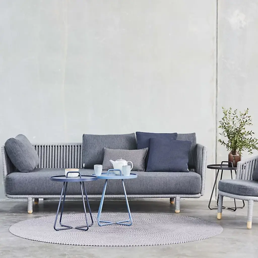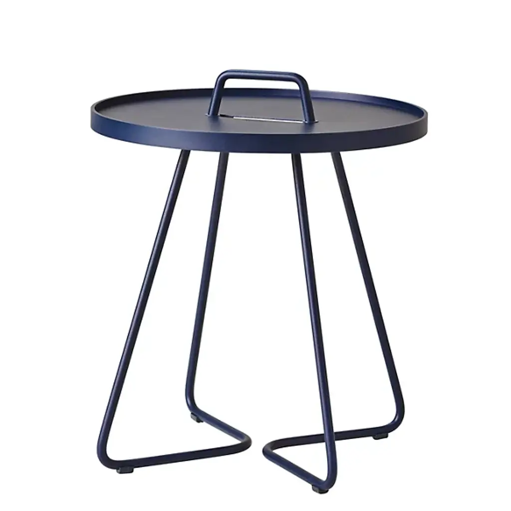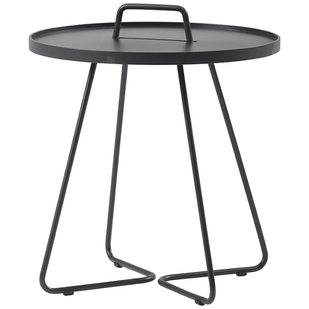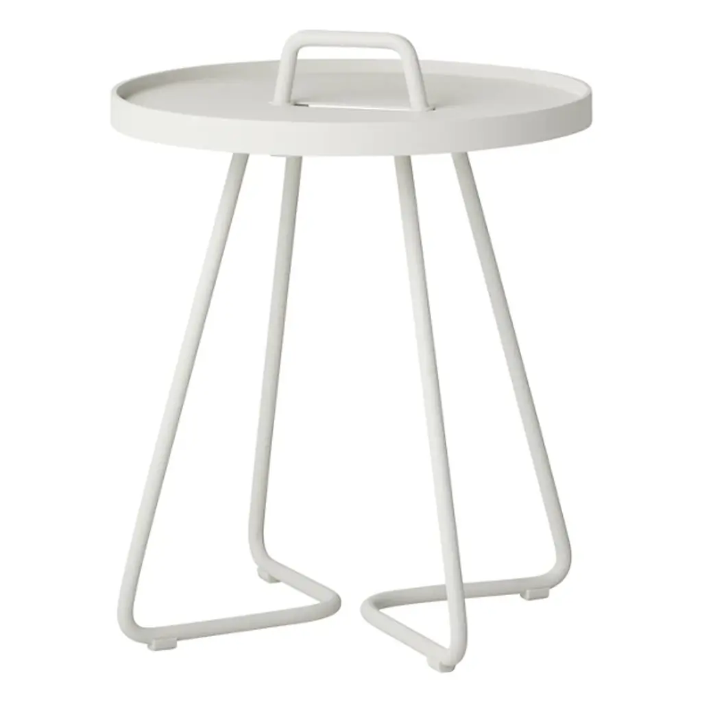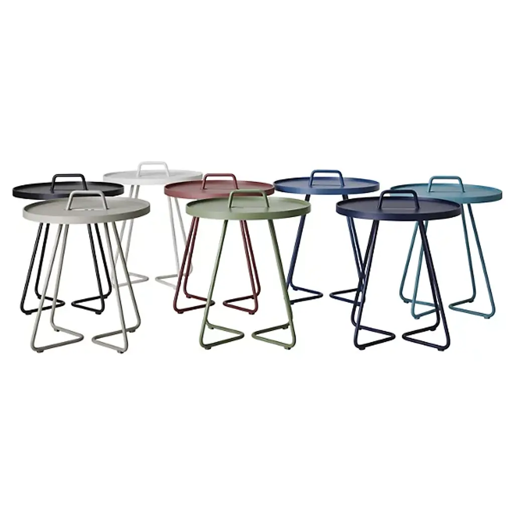 Lightweight, stylish and colorful, you'll want to take the Cane-line On-The-Move Outdoor Side Table with you everywhere you go. Each of its two main components pulls double duty. The tubular aluminum frame culminates in a carrying handle, while the tabletop is actually also a removable serving tray. Available in your choice of color and size.