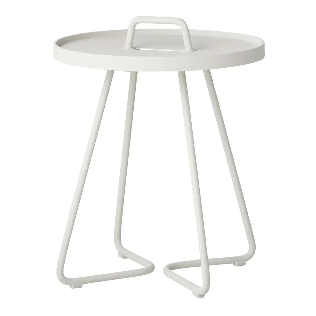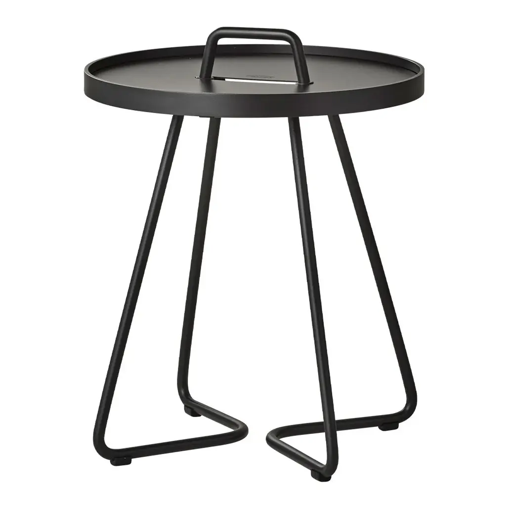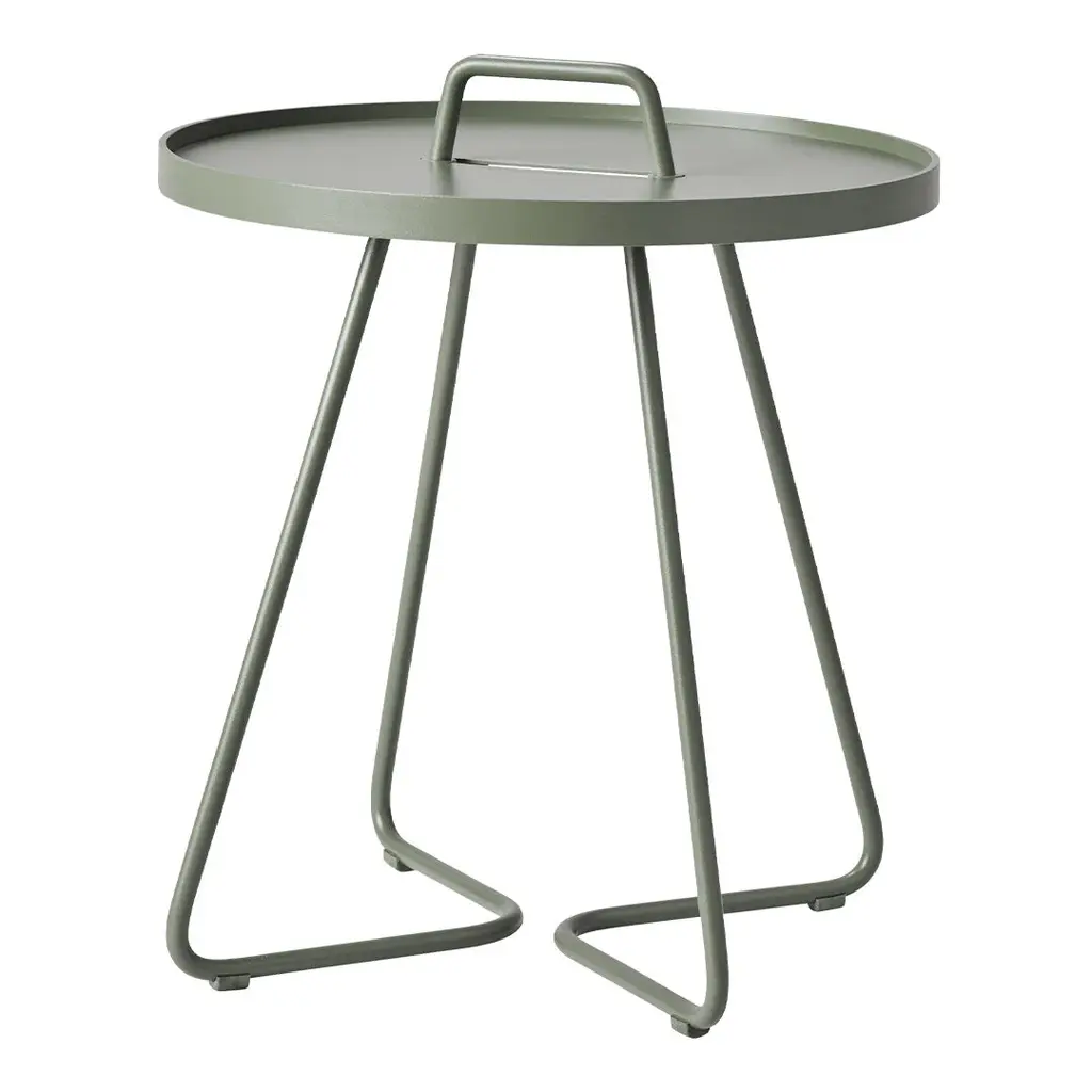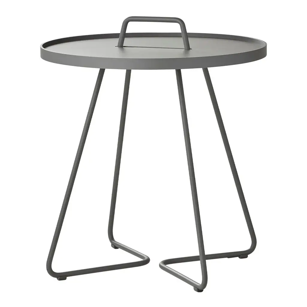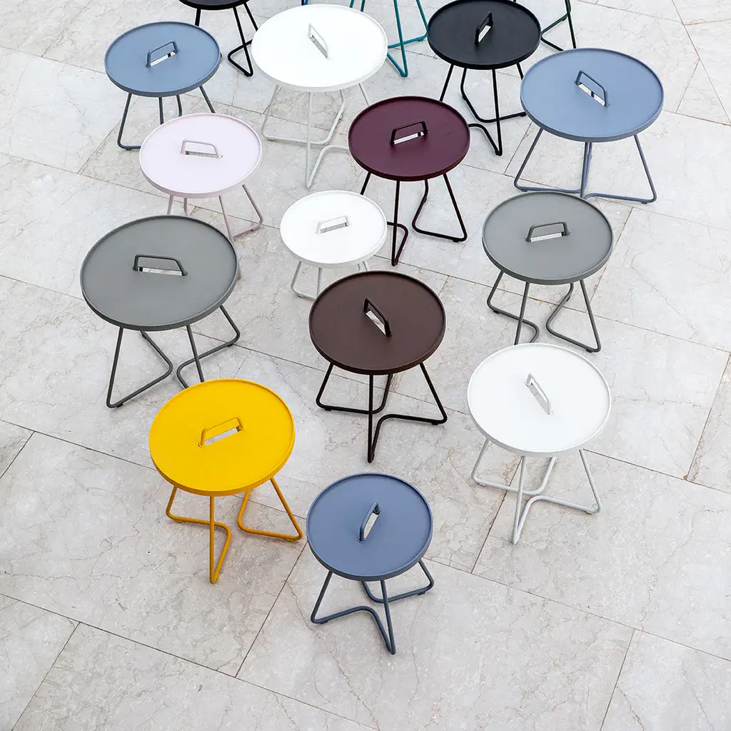 The successful launch of the On-the-move side table created a new demand from our customers to bring another size and colour in play. Cane-line and the Danish design team Strand + Hvass decided to make a smaller version of the side table that could both be used together with the larger version and of course as a stand alone side table. We decided for a new taupe colour - a nice warm grey colour that is also said to be the new black. The new colour is both available in the small and large version of the on-the-move table. The idea behind the design was to create a multifunctional side table with a loose tray. The Danish designers created a unique solution where the table top can easily be lifted off and used to carry drinks from the kitchen to the terrace. And easy to grap handle secures that the One-the-move table can be moved indoors after use. It is made in 100% aluminum thus it is designed for all-year usage outdoor. However, to minimize cleaning and keep the overall look of the product for many years, we recommend to store it indoors during the winter time.