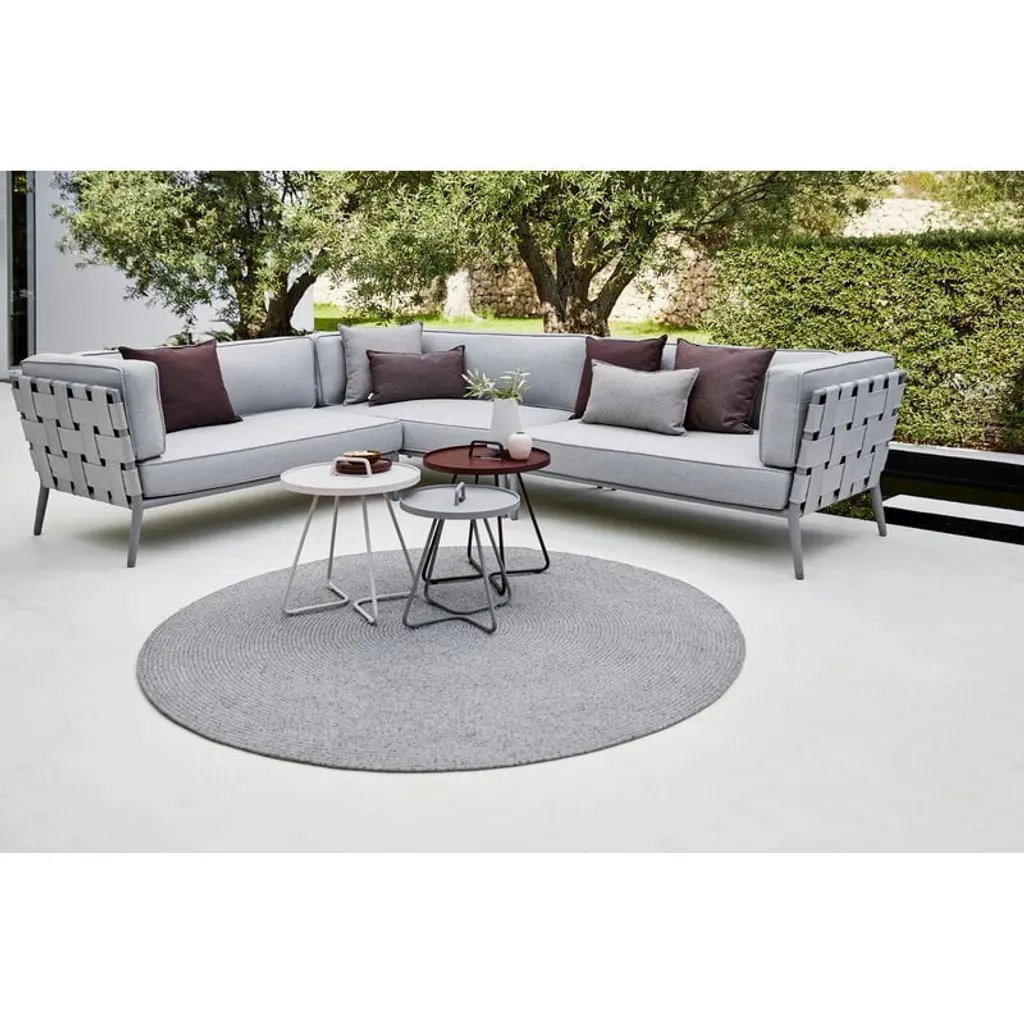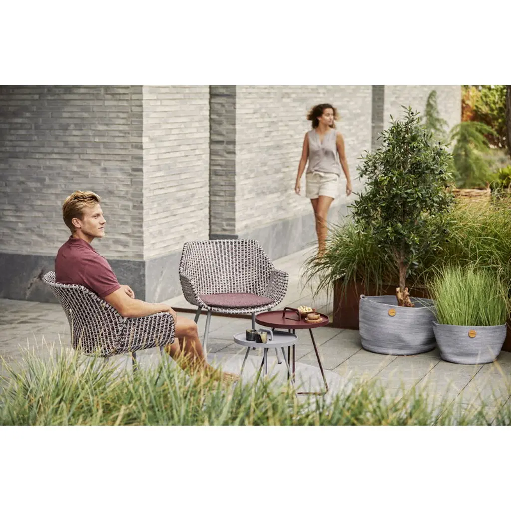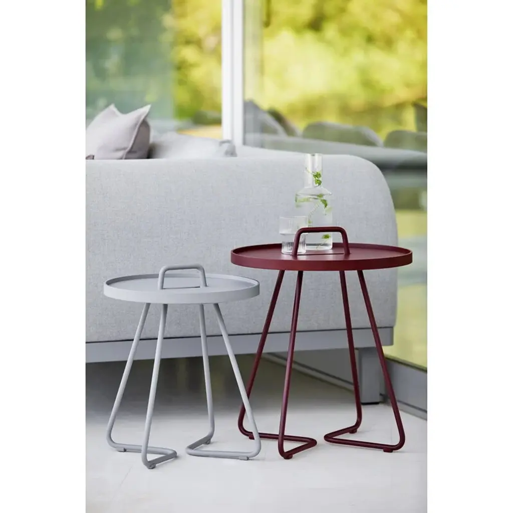 Cane-line’s On-the-move is a cheerful and multifunctional side table that is suitable for both indoor and outdoor use. Made of durable and lightweight aluminum and equipped with a handle, On-the-move is easy to move from one place to another. The detachable tabletop also functions as a tray that can be lifted off and used separately. On-the-move is a perfect side table for terraces, balconies or gardens, and it also makes a convenient, modern sofa table in the living room. The table was designed by the Danish design office Stand+Hvass. On-the-move can be used outdoors throughout the year, but it is recommended to store it indoors during the winter season.