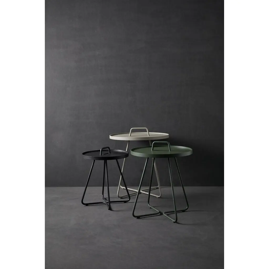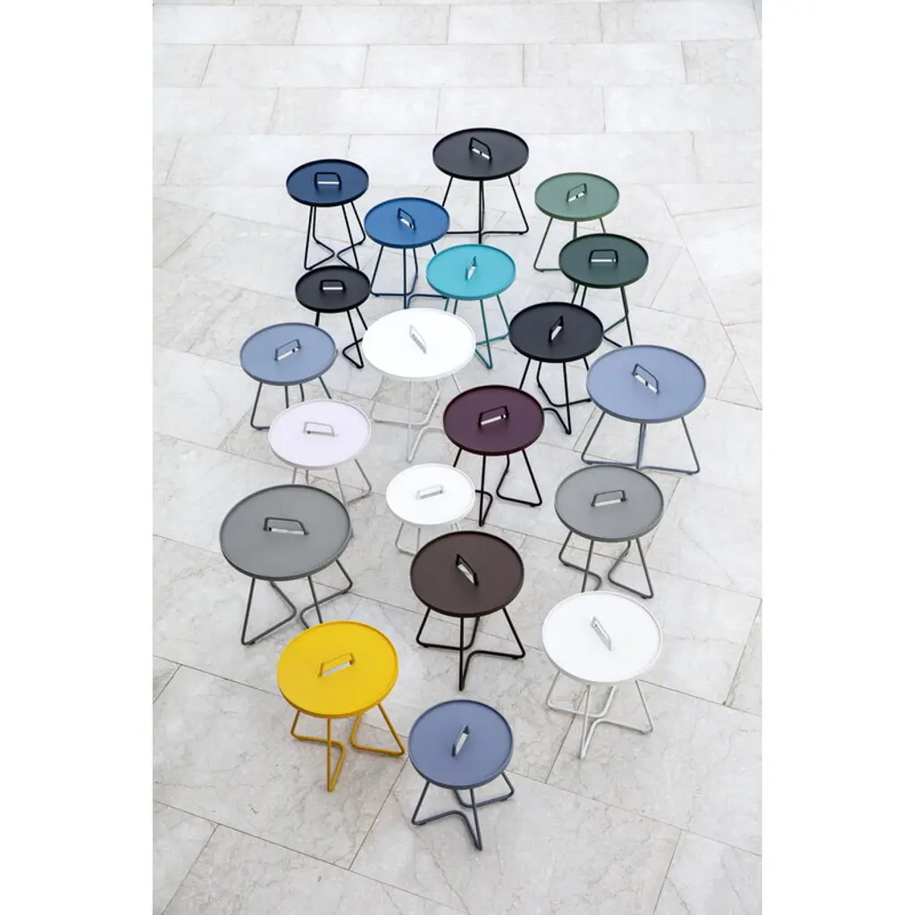Cane-line’s On-the-move is a cheerful and multifunctional side table that is suitable for both indoor and outdoor use. Made of durable and lightweight aluminum and equipped with a handle, On-the-move is easy to move from one place to another. The detachable tabletop also functions as a tray that can be lifted off and used separately. On-the-move is a perfect side table for terraces, balconies or gardens, and it also makes a convenient, modern sofa table in the living room. The table was designed by the Danish design office Stand+Hvass. On-the-move can be used outdoors throughout the year, but it is recommended to store it indoors during the winter season.