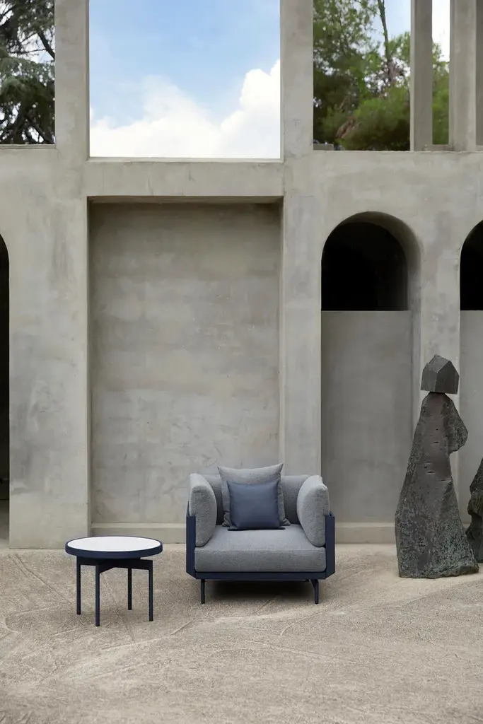 ONDE is a coffee table made of thermo-lacquered welded aluminium (corrugated thermo-lacquered aluminium sheet) with porcelain top.“My inspiration was to connect the idea of making a modular sofa and allow it to develop flexibly.The main idea came from looking at how the outdoor furniture market is changing and how people use outdoor furniture, while trying to understand GANDIABLASCO’s core ideas and the work being done at the company. It is a collection that, in addition to being designed for outdoors, fits easily with interior decoration.”