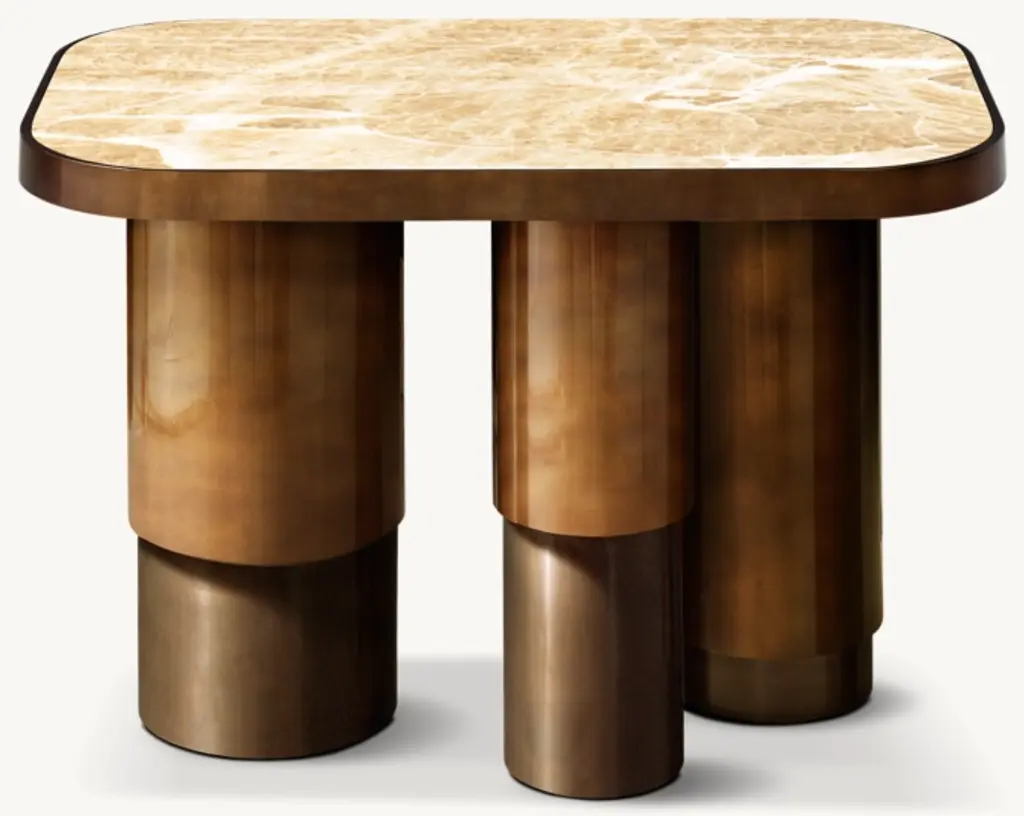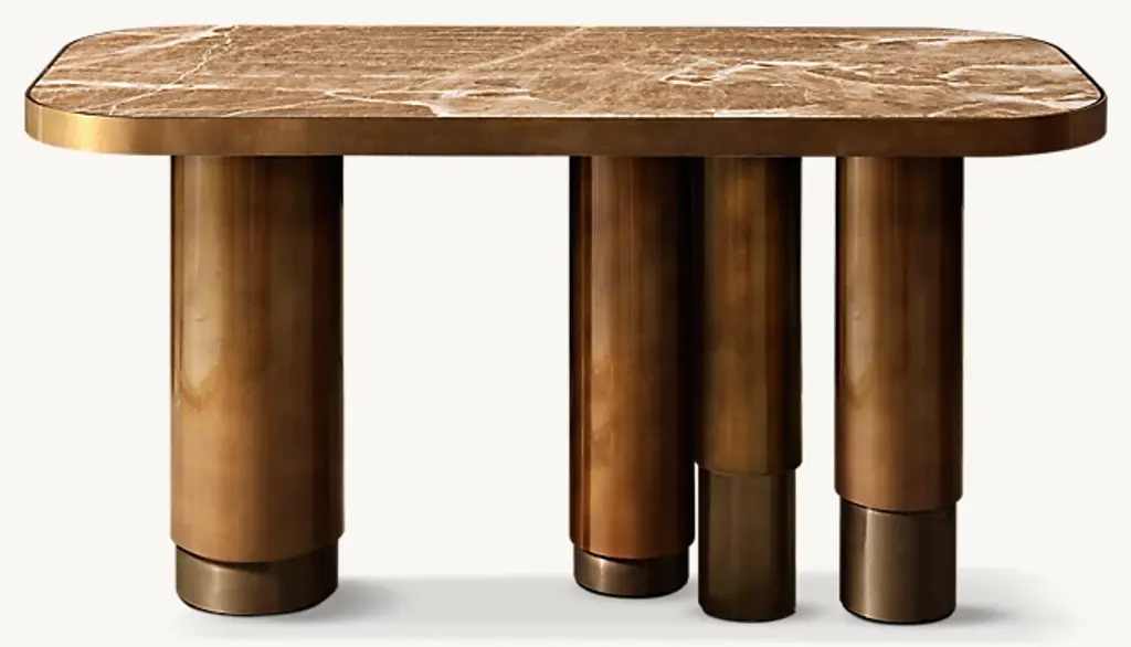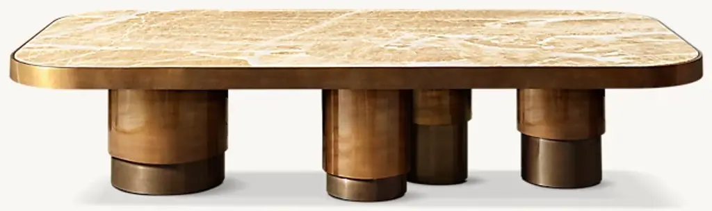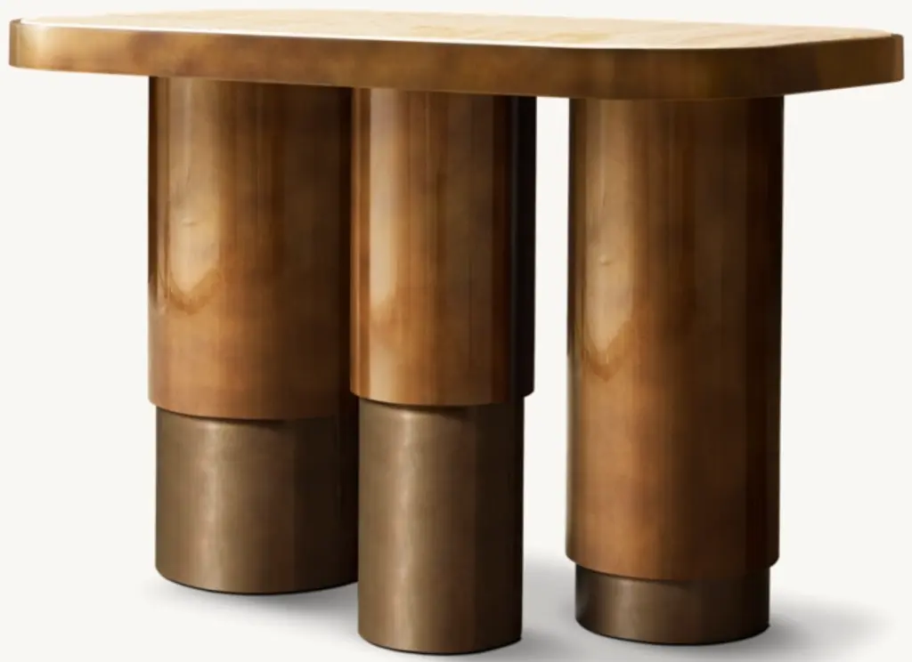 Crafted from rare onyx set in a solid brass frame, Onyx Tropez was inspired by a vintage table discovered in St. Tropez, France. The collection features asymmetric columns, finished by hand for an aged patina, and the distinctive pattern in each stone tabletop ensures every piece is unique.SHOP THE ENTIRE COLLECTION