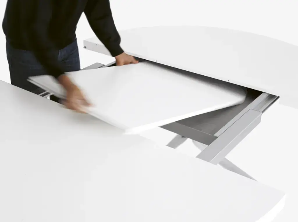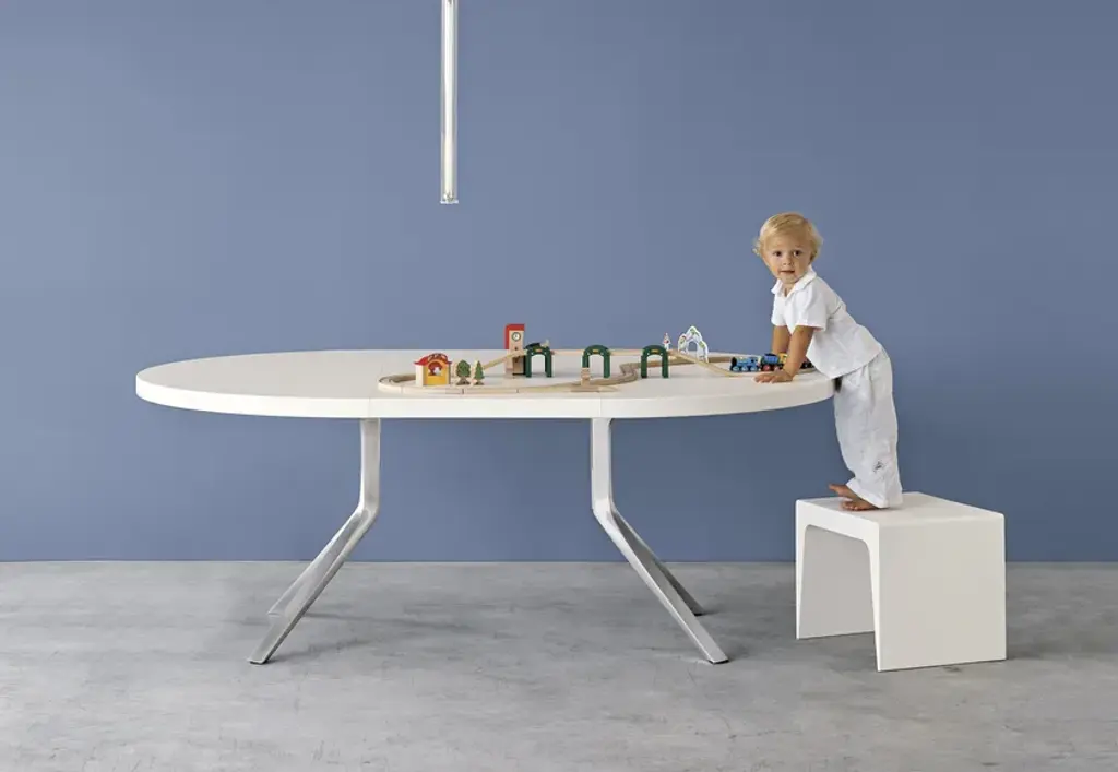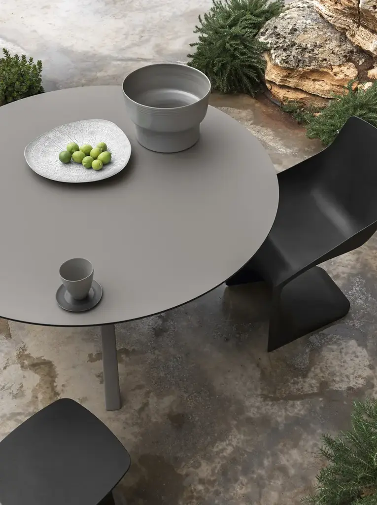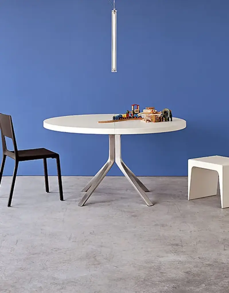 Designed by Monica Graffeo in 2006, Oops is an extendable table with an aluminium base and a 50mm thick lacquered top that extends from a round to an ellipsoidal shape. In technical terms, this table is impeccable when closed or open due to its aesthetic appeal and sturdiness. In 2016, the collection was extended: the Oops I Did It Again range now includes two fixed tables with a round top and a fixed table with a rectangular top, available in different sizes. The legs are made of die-cast aluminium with a brushed or powder-coated lacquer finish. They can be combined as required with a top in laminate, Fenix-NTM® or wood veneer.