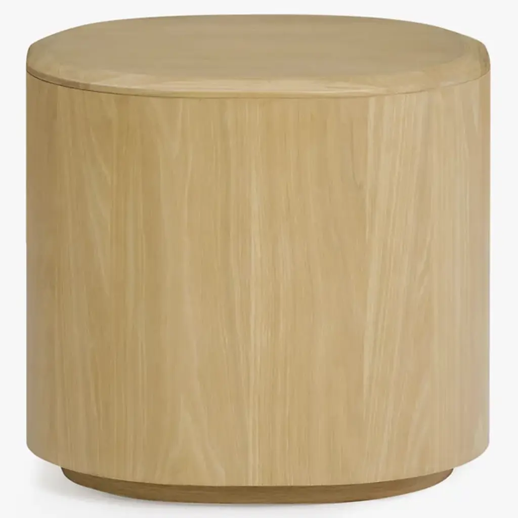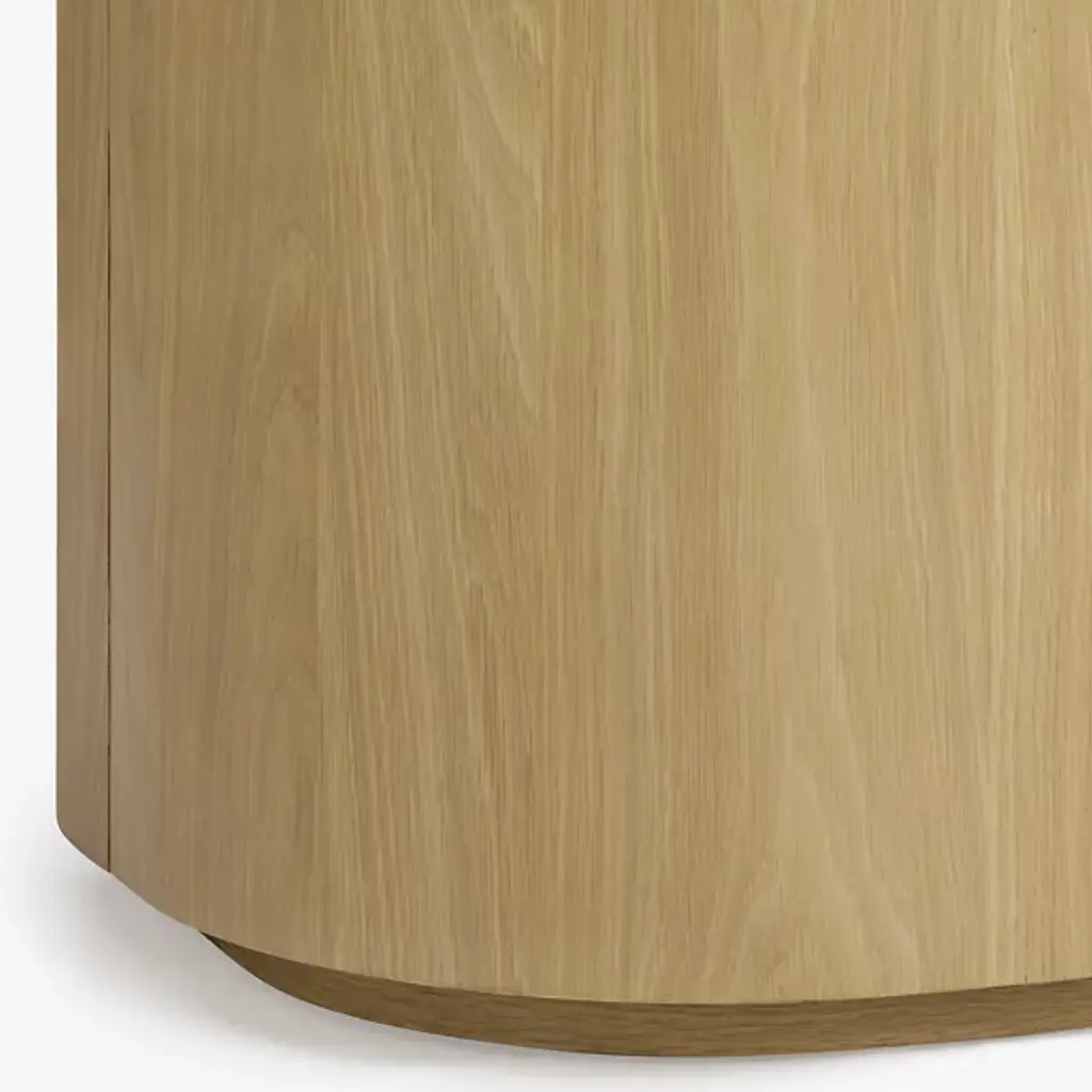 The Opes Side Table from Alder & Ore appears to hover above the ground, its recessed plinth creating an illusion of weightlessness. With its subtly beveled edge, the top softens the table's profile while highlighting the oak's natural grain patterns. Whether nestled beside a cozy armchair or standing proud in an entryway, this table transforms the simple act of setting down an object into a moment of aesthetic appreciation.