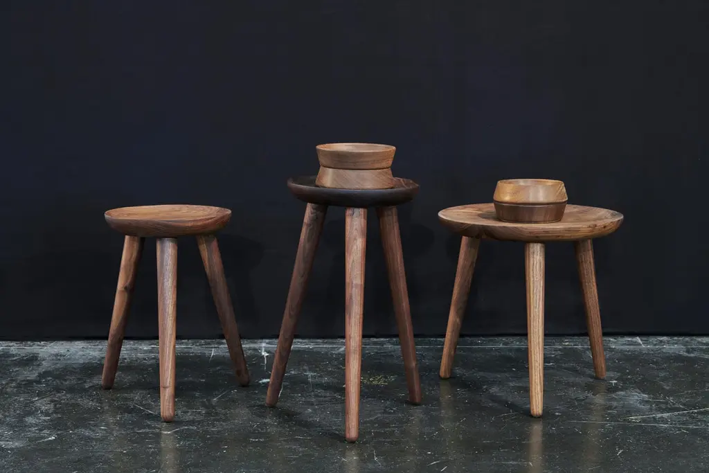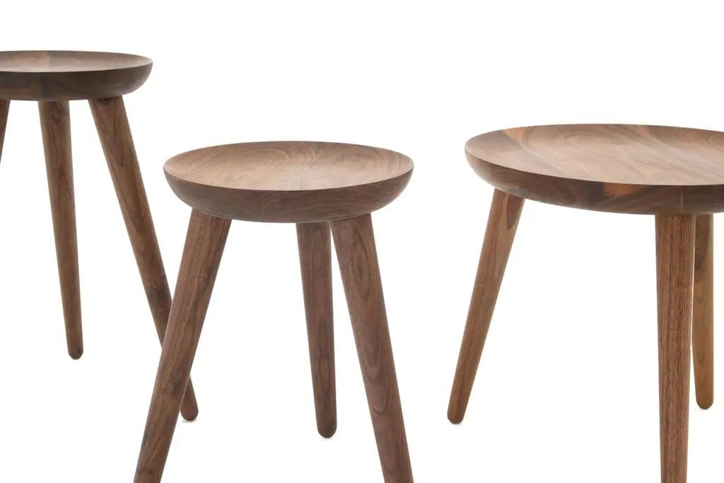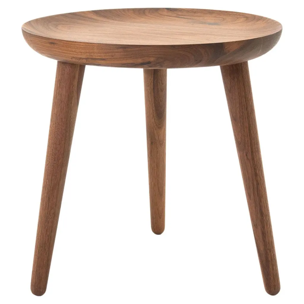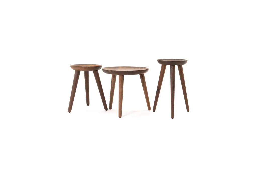 The opium is a set of side tables, also available individually, made from turned solid walnut and angled tenon joints. The wood top is inspired by the shape of the opium poppy and fits instantly in modern and classical homes. This handcrafted piece is hand-oiled using our in-house oils and techniques.