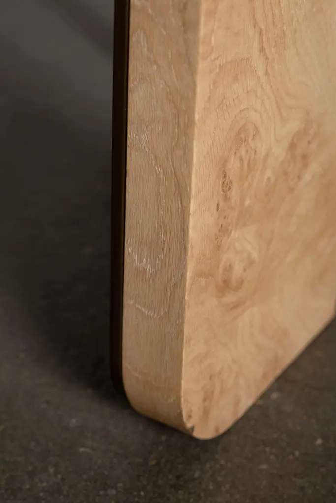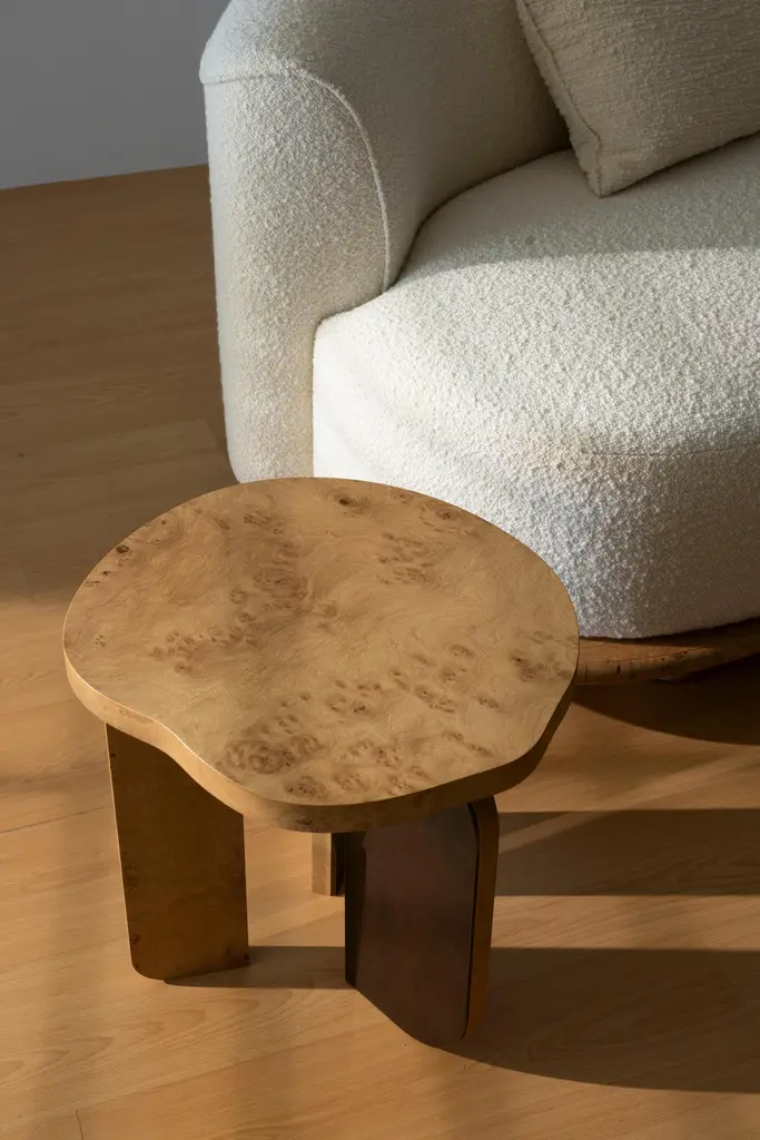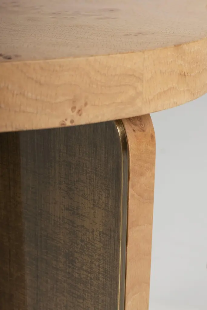 Dornes Side Table, Contemporary Collection, Handcrafted in Portugal - Europe by Greenapple.The Dornes side table was crafted to tell a story of scenic beauty, embodying the captivating landscapes and historical heritage that define our country. With its organic design mirroring the contours of the small village of Dornes, this wooden side table presents a light and natural aesthetic, seamlessly blending nature’s elements into the contemporary home.Dornes Side Table Material CodesME026 Dark oxidised brass; high-gloss finishWD170 Oak root; raw effect; matt finishHandcrafted in Portugal - Europe by GreenappleUnique by design, Crafted by peopleFounded in 2005 by Sérgio Rebola and Rute Martins, Greenapple designs and produces in-house luxury furniture for exclusive customers worldwide.Our own in-house production facility allows us to be obsessed with detail, and gives us the freedom to dedicate ourselves to the most demanding tailor-made and customized work. As Rute designs all the unique pieces, Sérgio assures the high-quality standards through the whole process - from design to production; from production to your home. Fine craftsmanship, whether perfected by experienced hands or state-of-the-art machinery is quintessential in delivering top quality experiences.
