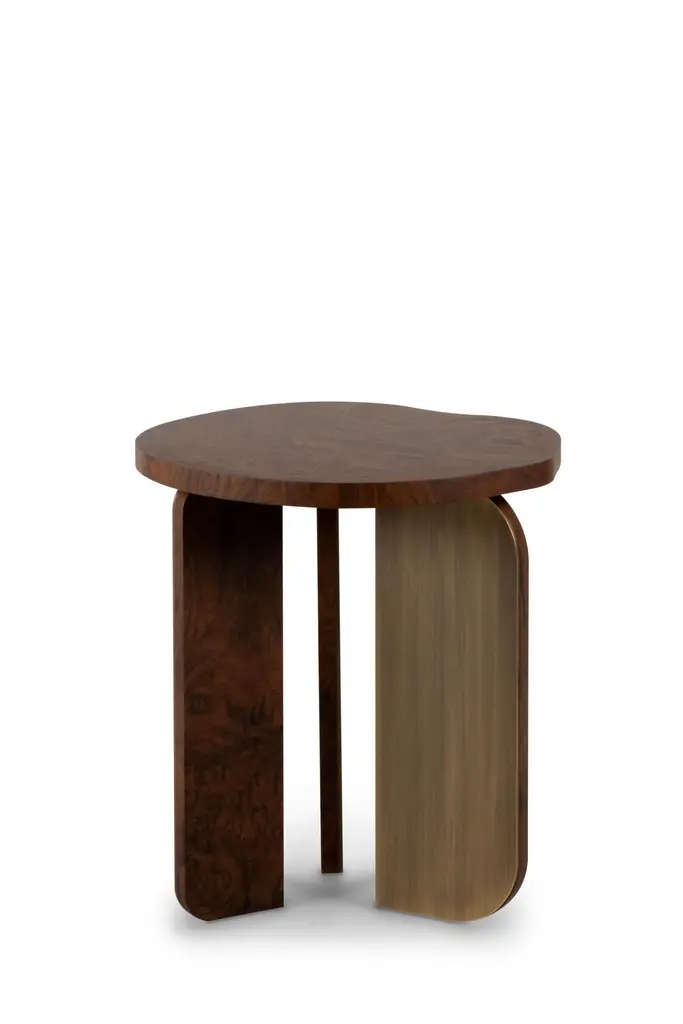 Organic Modern Dornes Side Table, Walnut Brass, Handmade Portugal By Greenapple