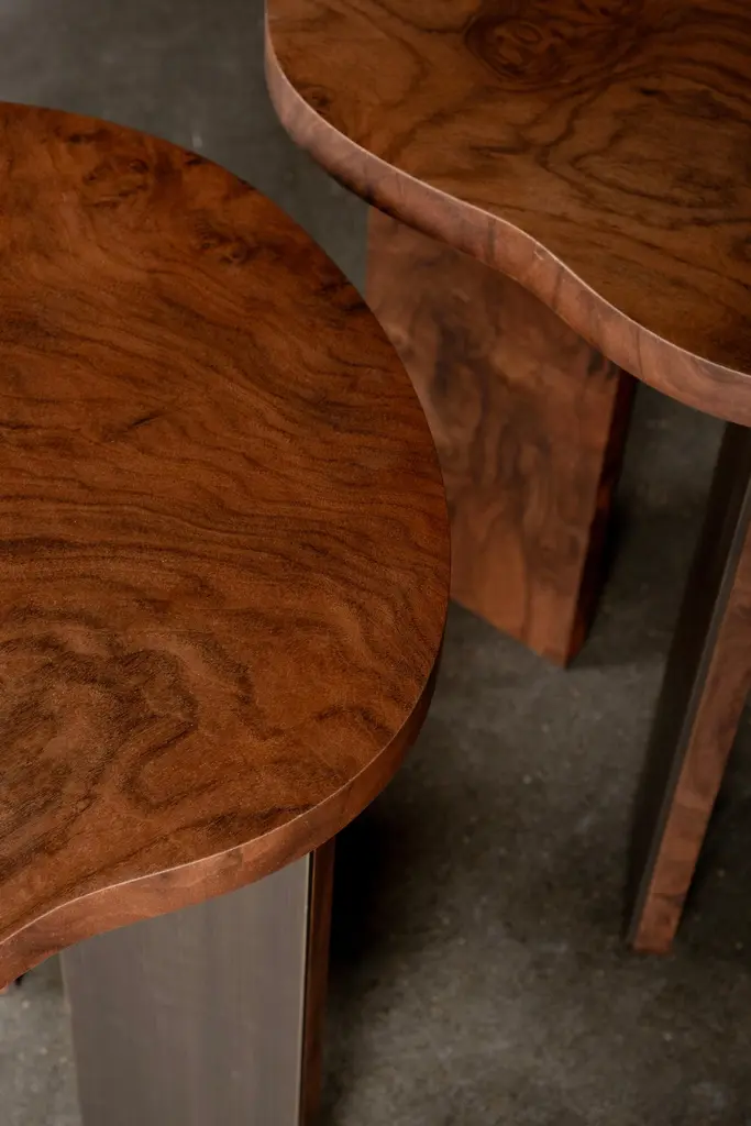 Dornes Side Table, Contemporary Collection, Handcrafted in Portugal - Europe by Greenapple.The Dornes side table was crafted to tell a story of scenic beauty, embodying the captivating landscapes and historical heritage that define our country. With its organic design mirroring the contours of the small village of Dornes, this wooden side table presents a light and natural aesthetic, seamlessly blending nature’s elements into the contemporary home.Dornes Side Table Material CodesWD154 Walnut root; natural colour; matt finishME029 Dark oxidised brass; matt finishHandcrafted in Portugal - Europe by GreenappleUnique by design, Crafted by peopleFounded in 2005 by Sérgio Rebola and Rute Martins, Greenapple designs and produces in-house luxury furniture for exclusive customers worldwide.Our own in-house production facility allows us to be obsessed with detail, and gives us the freedom to dedicate ourselves to the most demanding tailor-made and customized work. As Rute designs all the unique pieces, Sérgio assures the high-quality standards through the whole process - from design to production; from production to your home. Fine craftsmanship, whether perfected by experienced hands or state-of-the-art machinery is quintessential in delivering top quality experiences.