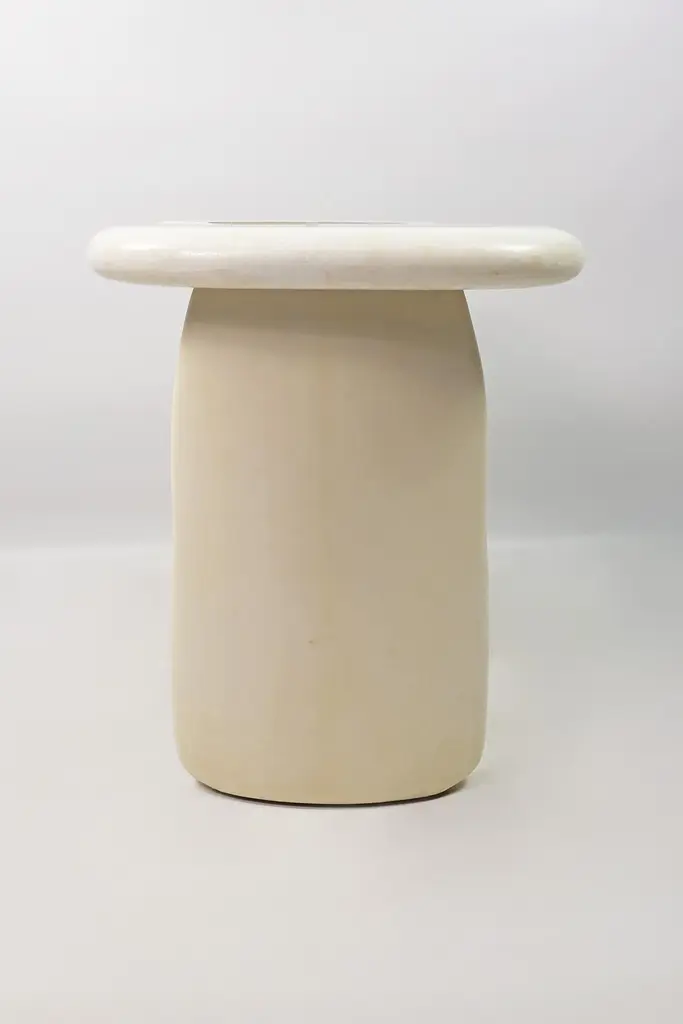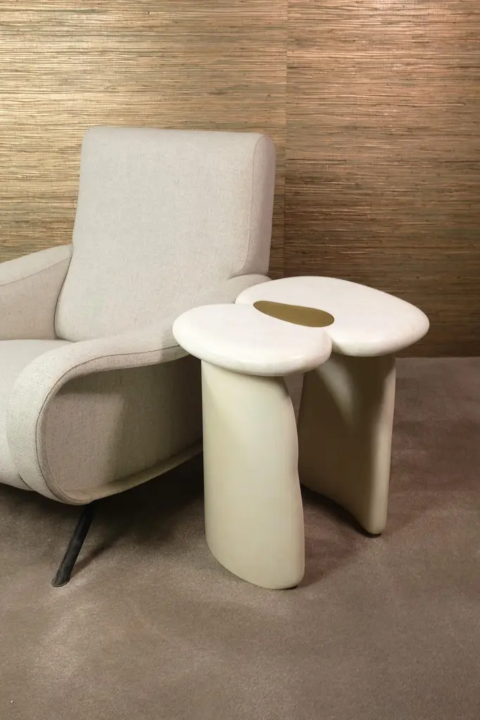 Organic Side Table In White Rock Crystal And Textured Brass By Ginger Brown