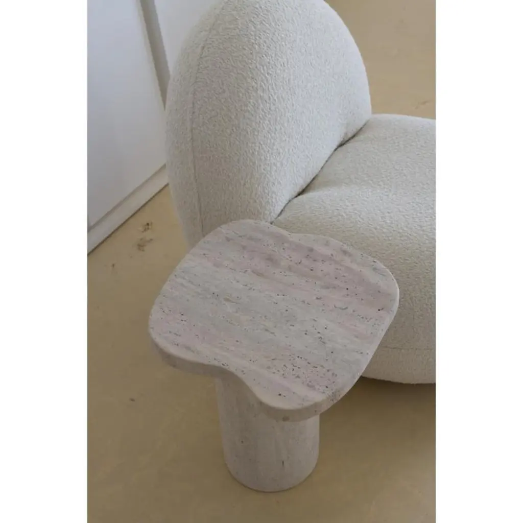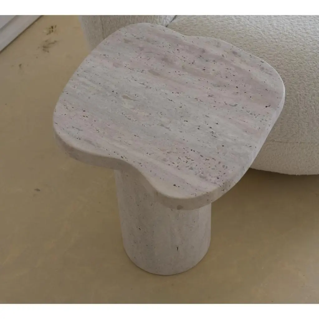 Alpha Lizea 40 Handcrafted Travertine Square Side Table by Beije AvenueDimensions: Ø 40 x H 55 cm. Materials: Travertine.Available in different size options. Please contact us.The Alpha side table in organic travertine features an irregular top that embraces the aesthetics of organic stone. It will be combined with its smooth base. Our side table will be ideal as an end table, pedestal table or bedside table. Its design will sculpt your interior.A highly prized rock during Antiquity, Travertine displays its unique roughness to transcend the most charismatic designer pieces.It has unique characteristics that allow it to stand the test of time without losing its value. Raw yet sensual, mineral without being cold, vibrant and textured, Travertine floods interiors in search of a sophisticated natural look. Travertine stone held a prominent place in the era of ancient Rome. Indeed, it was used in the construction of famous buildings such as the Colosseum and the Theatre of Marcellus.At Beije Avenue, we work with a porous natural travertine, lighter than marble or granite. Its specificity: it is made up of small, unevenly distributed cavities which give it character and an authentic cachet. Travertine can take on various shades of color, depending on the area where it is extracted. We can therefore observe a panel which varies from very light beige to ivory, which allows us to give a noble and sophisticated look.