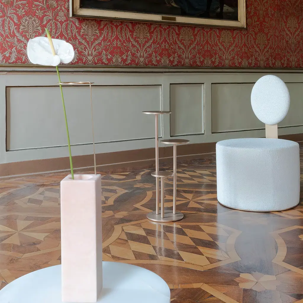 The Orion Side Table by Artefatto Design Studio is a striking blend of functionality and art. Inspired by Orion's Belt, it features three brushed metal discs at varying heights, creating a layered, sculptural effect. Crafted in a Satin Brass finish, the table offers a versatile elegance for any interior. Available in various metal finishes, Orion brings a celestial touch to modern decor.