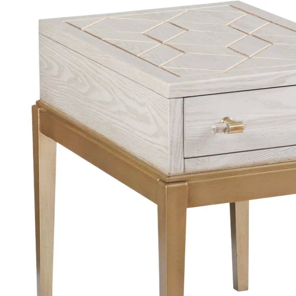 The Orla Accent Table showcases versatile transitional styling, bringing a sense of elegance to your space. Its design features a geometric pattern and accents that add charm and character to this trustworthy piece of furniture. It's a delightful addition to your home, marrying style and function seamlessly.