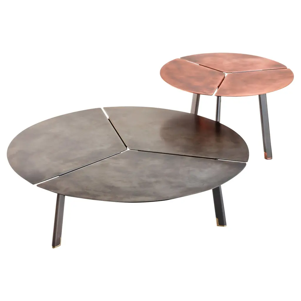 Blomus ORU Steel Side Tables were inspired by the Japanese art of origami. The tables consist of thin, powder coated, flat and folded steel sheets which when assembled create a three dimensional table with opposing radii and delicately curved interfaces. Use ORU as a side table, nightstand or use both sizes together to form a coffee table or accent piece. Features