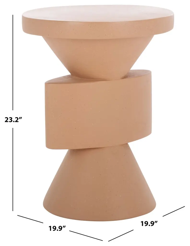Enliven your home with the modern and playful charm of our Orven Accent Table. Bold geometric shapes are artfully balanced to add sculptural flair to our accent table. Two voluminous cones gracefully hold a cube to make a graphic impact in any room. Crafted in a durable material, our accent table can create an elevated display of your favorite decor items to become a stand-out accent next to your sofa or armchair or keep essentials within arm's reach.