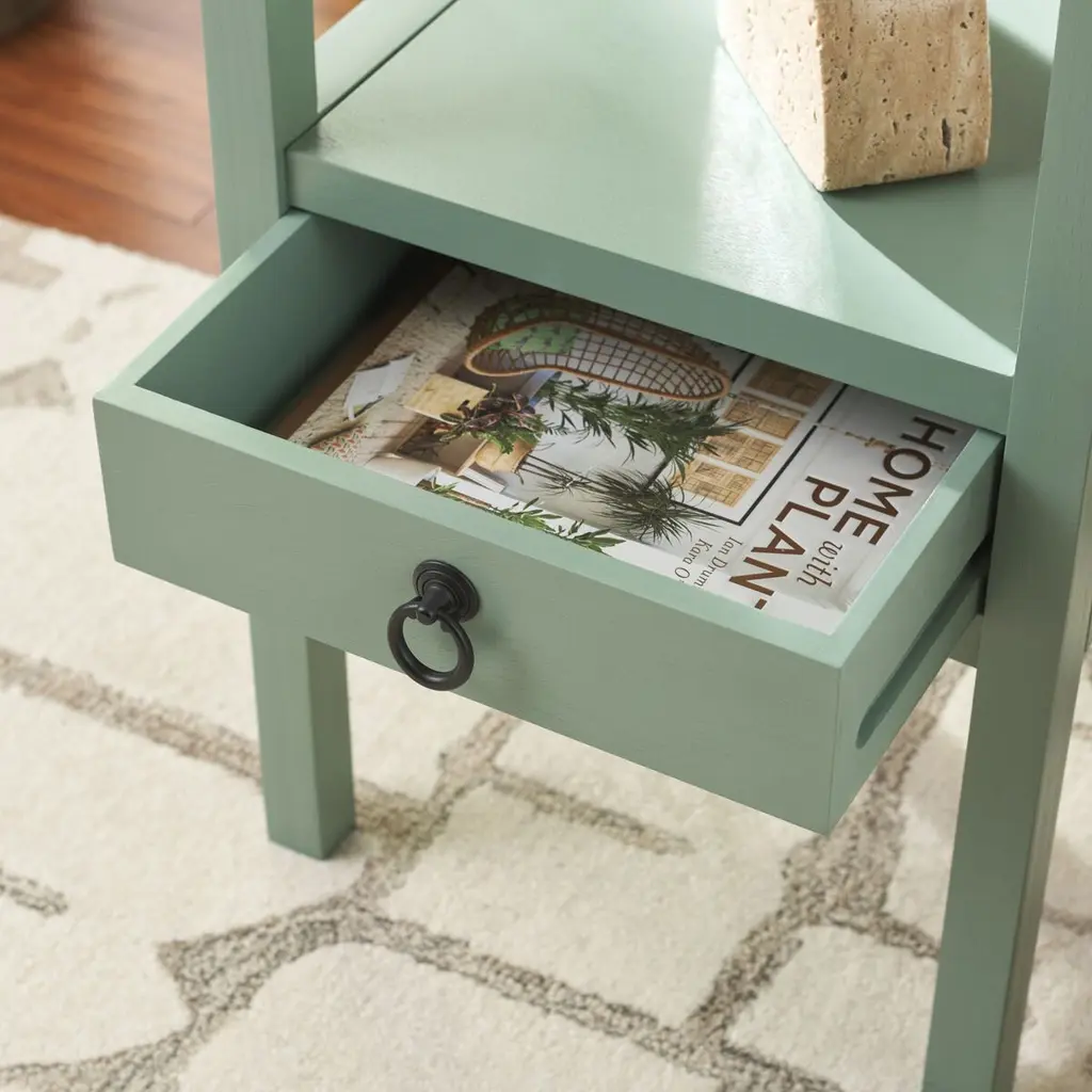 Elevate your space with the Oshenan One Drawer Accent Table. This versatile piece features a single drawer, offering convenient storage while adding a touch of elegance to any room. Its design blends seamlessly with a variety of decor styles, providing a sophisticated and calming presence. Perfect for adding a subtle touch of charm to your living room, bedroom, or entryway, the Oshenan Table is both functional and stylish.
