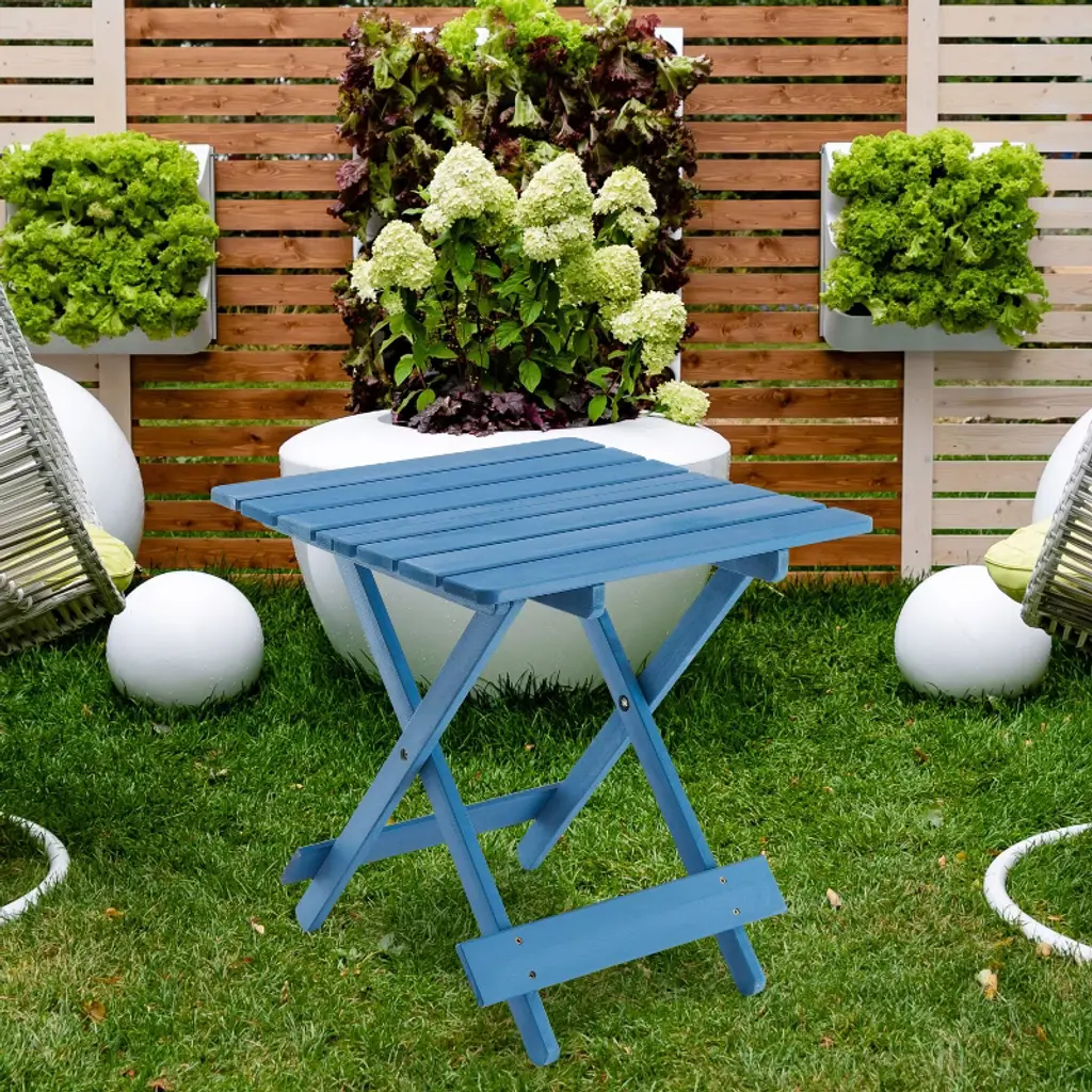 Osparple Small Outdoor Side Table Solid Wood Outdoor Bistro Table Foldable Patio Furniture End Table For Courtyard, Balcony, Blue