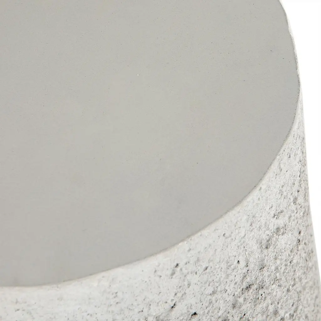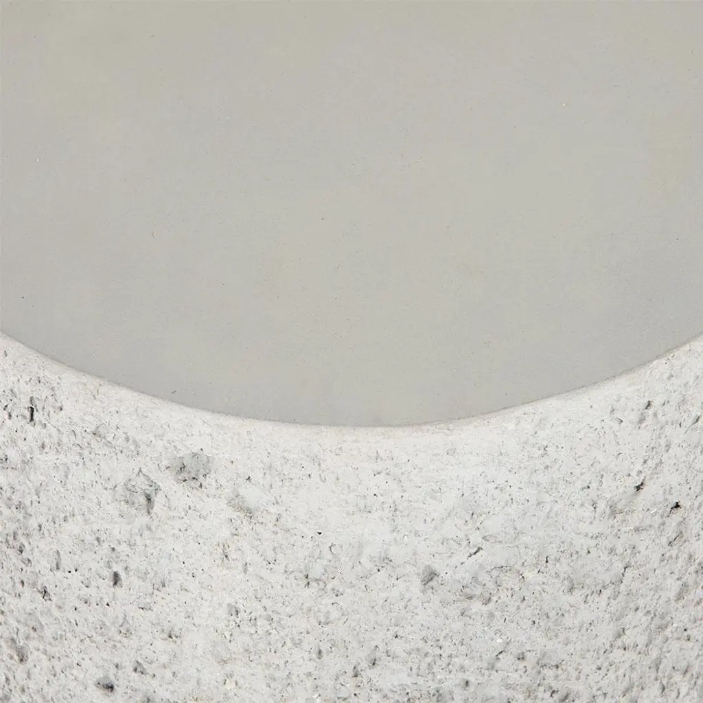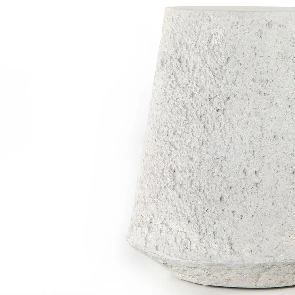 Solid concrete is formed in a tapered shape and finished in matte white on the modern Otto end table. A smooth tabletop contrasts with the richly textured surface below it, bringing dimension and visual interest to this outdoor end table.