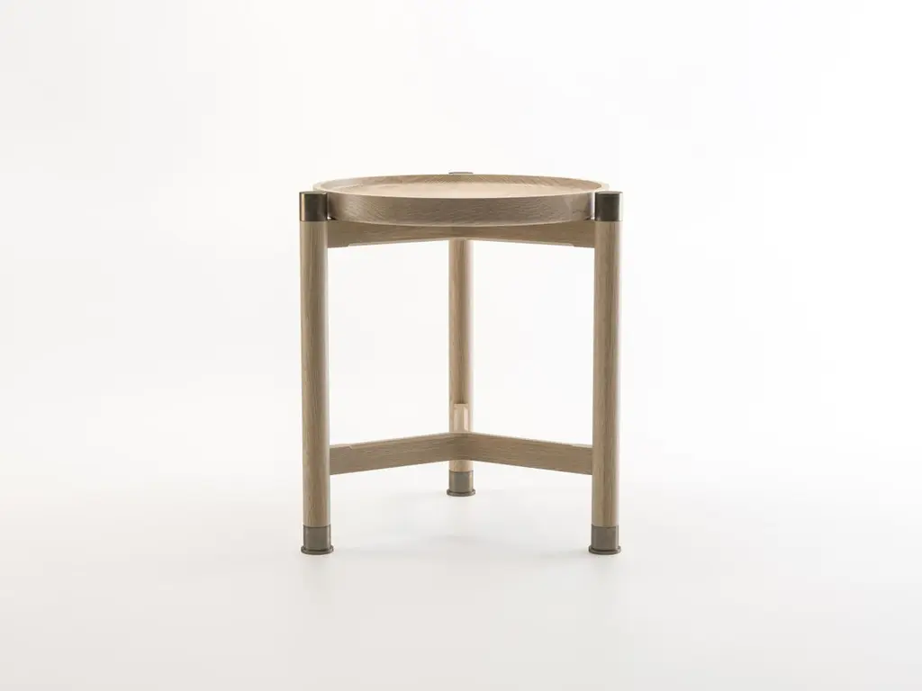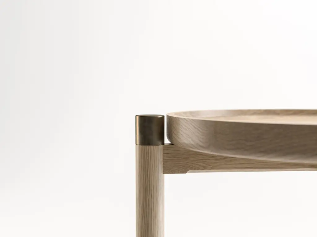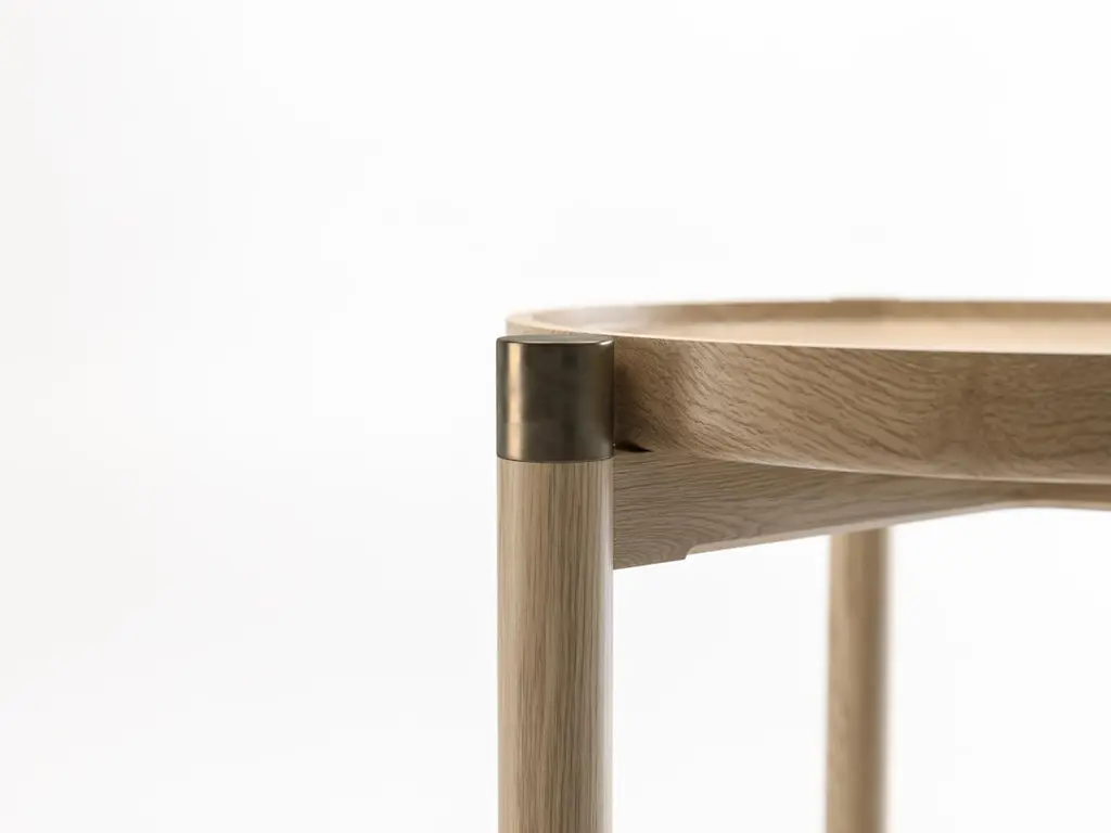 Otto Round Accent Table In Oak With Antique Brass Fittings