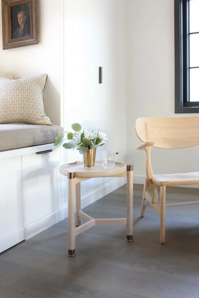 The Otto accent table is a small-scaled table with a Classic, simple, form. Available in oak or walnut, it features a round coupe top, substantial antique brass fittings and sleek chamfered stretchers. The epitome of understated elegance - it works beautifully in a multitude of settings.Finish: Oak with Matte Lacquer & hand waxed finish Dimensions: Coupe top diameter 15" x 18" Tall (OAD: 17.75")Customization available upon request.Crating & Packaging costs may apply.The Ø collection by Herringbone Designed: Bespoke at birth. Never out of style.Designed & Manufactured in Los Angeles, CA.