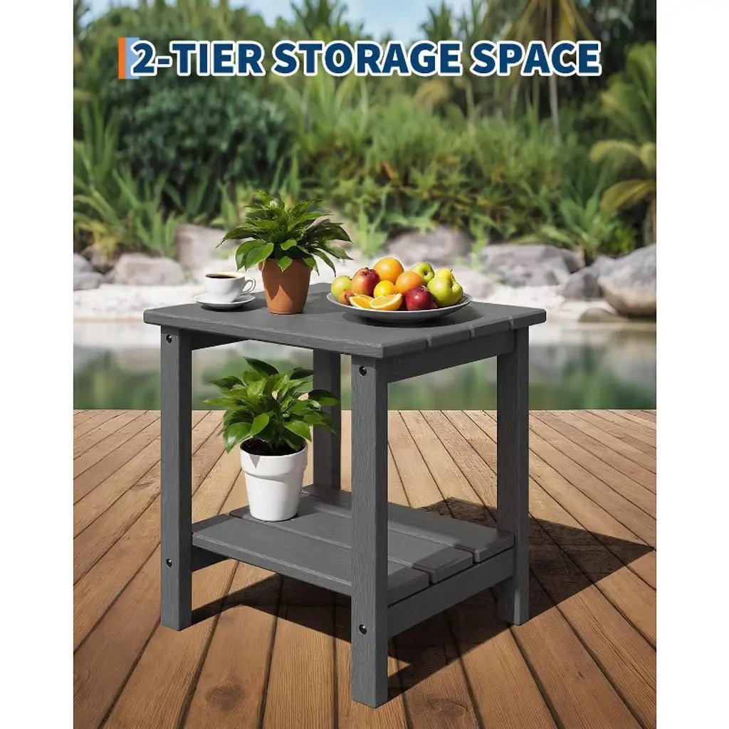 Outdoor Adirondack Side Table, 2-tier Sturdy Patio End Table Weather Resistant, Outdoor Square Side Tables For Patio, Poolside, Porch, Backyard