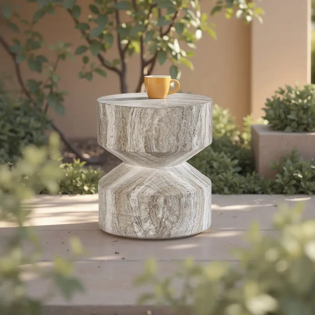 Our Hourglass Outdoor Side Tables offer the look of natural stone in durable, weather-resistant designs perfect for outdoor spaces. Whether placed beside a lounge chair, next to a sofa, or styled as an accent piece, each table’s sturdy construction and modern aesthetic provide both function and style. Designed to complement patios, gardens, and poolside retreats, these versatile side tables enhance outdoor living with timeless appeal.