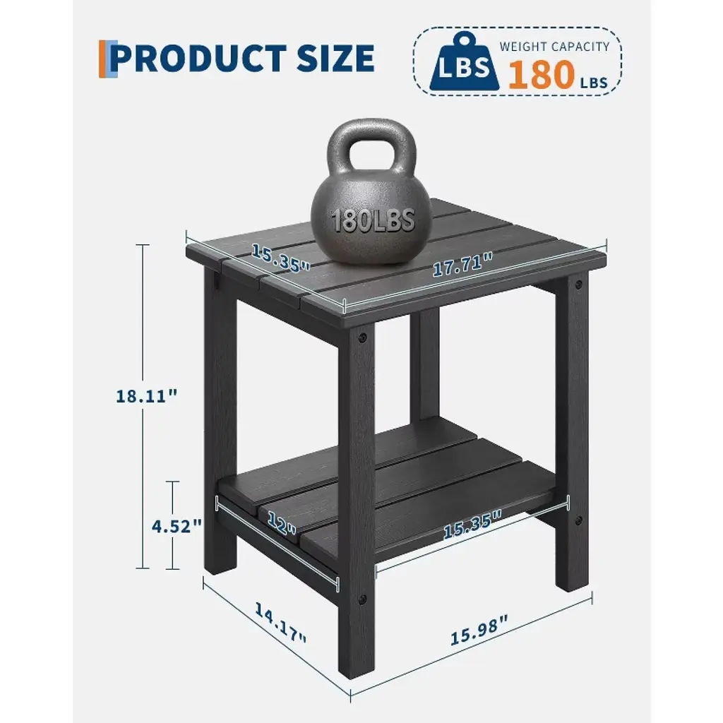 Outdoor Side Table 18 x 15 inch, HDPE 2-Tier Patio Side Tables for Outside, All-Weather End Table for Patio Pool Deck Indoor Backyard, Black