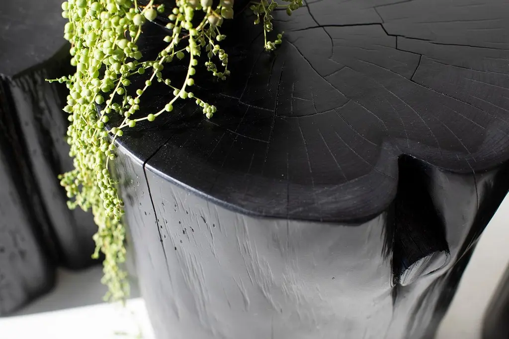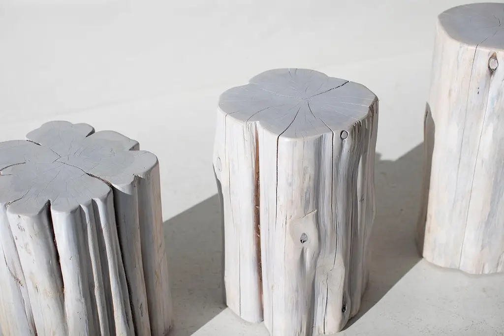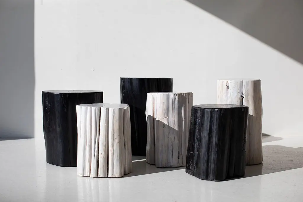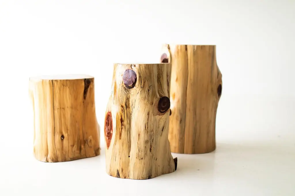 Please scroll down to read IMPORTANT INSTRUCTIONS ABOUT OUR STUMPS before purchase!Please note, we have upgraded to a more durable outdoor finish with extra UV protection. With the extra durability comes more of a glossier finish. Please refer to photo #2 which shows the true new outdoor finish.Why buy our stumps?KILN DRIEDOur stumps all go through a drying process in our kiln, sometimes for up to a month. We are meticulous with bringing each and every log to a specific moisture level. This process helps with major cracking, long-term moisture issues, and bugs.ECO FRIENDLYIn an effort to replenish the trees we use, we plant 50+ trees a year. In addition, we practice salvage logging. Where do we source these? Some of the trees fall naturally. Some have damage from severe wind, lightning, flood, disease, or other natural disturbance so they need to be cut and removed before they fall. Others are fresh cut because people want them off their land. Salvage logging may reduce erosion, reduce intensity of future wildfires, and slow buildup of pest insects.FAMILY OWNEDThese are made from our family to yours. Quality is of utmost importance, and we hand cut, de-bark, sand, and finish every piece with care. COMMERCIAL GRADEThese stumps are meant to be loved and USED. Each is finished with a durable commercial-grade finish. This finish is tough enough for spills, kids, and holds up in hotel and hospitality settings.PLEASE NOTE : These stumps will age naturally, and even more so being outdoors and exposed to the elements. Each is a solid log with its own unique character so we can not guarantee the finish won't fade or discolor as this varies per climate and log. These outdoor tree stump tables are made in the heart of Ohio with locally sourced wood. They can be used for a side table, a stool, or grouped together for a coffee table. Each table is handmade with a solid trunk of red cedar with a commercial-grade outdoor finish. Please specify your color choice when ordering - whitewash, black, or natural.IMPORTANT INFORMATION ABOUT OUR STUMPS...1. Please unpack your stump immediately and leave it out of any packaging. These are real pieces of wood and need to breathe!2. For OUTDOOR stumps : Though these are kiln dried and the wood can be used outdoors, sometimes when they arrive in different climates, humidity levels adjust and can affect the finish on top. We see this more often in direct sunlight. We do our very best and continue to make sure there are no issues, but we can not control climate. Solid wood and the elements are unpredictable and we will not be liable. The great thing about these logs is you can always sand them down and refinish.3. Wood naturally moves. These are solid pieces and for that reason, they are prone to cracking. You may get more cracks or bigger cracks in the first few weeks as the wood acclimates to its new home and climate.4. These stump tables have nylon glides (feet) underneath not only to make them easier to move around (they are heavy!), but also so there is nice air flow to the wood. The air flow is most effective on hard flooring. If you put these on rugs or carpeting, we suggest checking on the underside of your stump periodically to prevent any issues.5. We are not liable for any damages to property or people. If you have any concerns or questions you need to discuss, please write or call. We are always available, honest, and transparent about our products. Thank you and I hope you love these!SpecsPeriod/model: New and modern rusticSpecs: Cedar stump, commercial-grade finishDimensions:H 18"W 11" (give or take).Shipping price is per piece. If you are buying multiples, there will be additional charges.