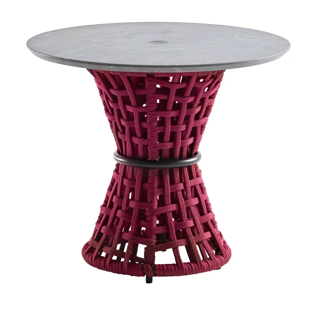 Outdoor side table in a combination of satined black metal treated in cataphoresis and light grey woven cordage. Top in treated "CARDOSO" natural stone with inserted Giorgio Collection logo. Special outdoor cover included in the price.