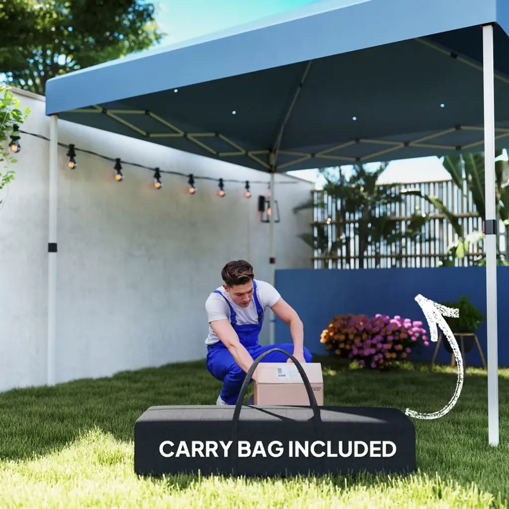 Discover the ease of outdoor gatherings with the Outsunny pop-up outdoor gazebo. This garden tent springs to life in moments with its swift pop-up design, neatly packed into a wheeled bag for effortless travel. The UPF50+ Oxford fabric gazebo tent shields you from 98% UV rays, offering a comfortable, shaded spot for 6-9 people, whether it's a family reunion or a market day. Ground stakes, guy ropes, and sandbags are included for stability.