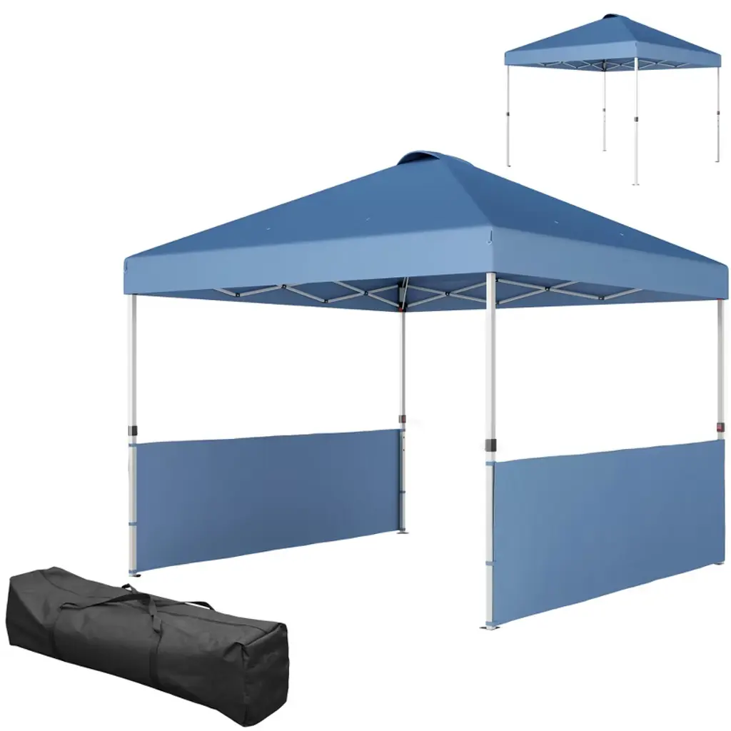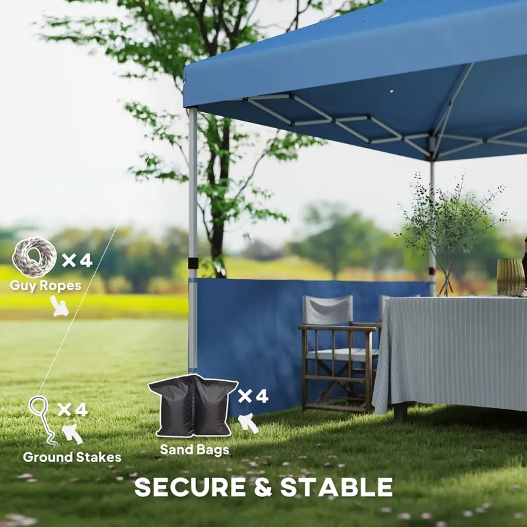 Outsunny 10' X 10' Pop Up Canopy Tent With 2 Half Sidewalls, Uv50+ Height Adjustable Instant Sun Shelter With Wheeled Carry Bag, Sea Blue