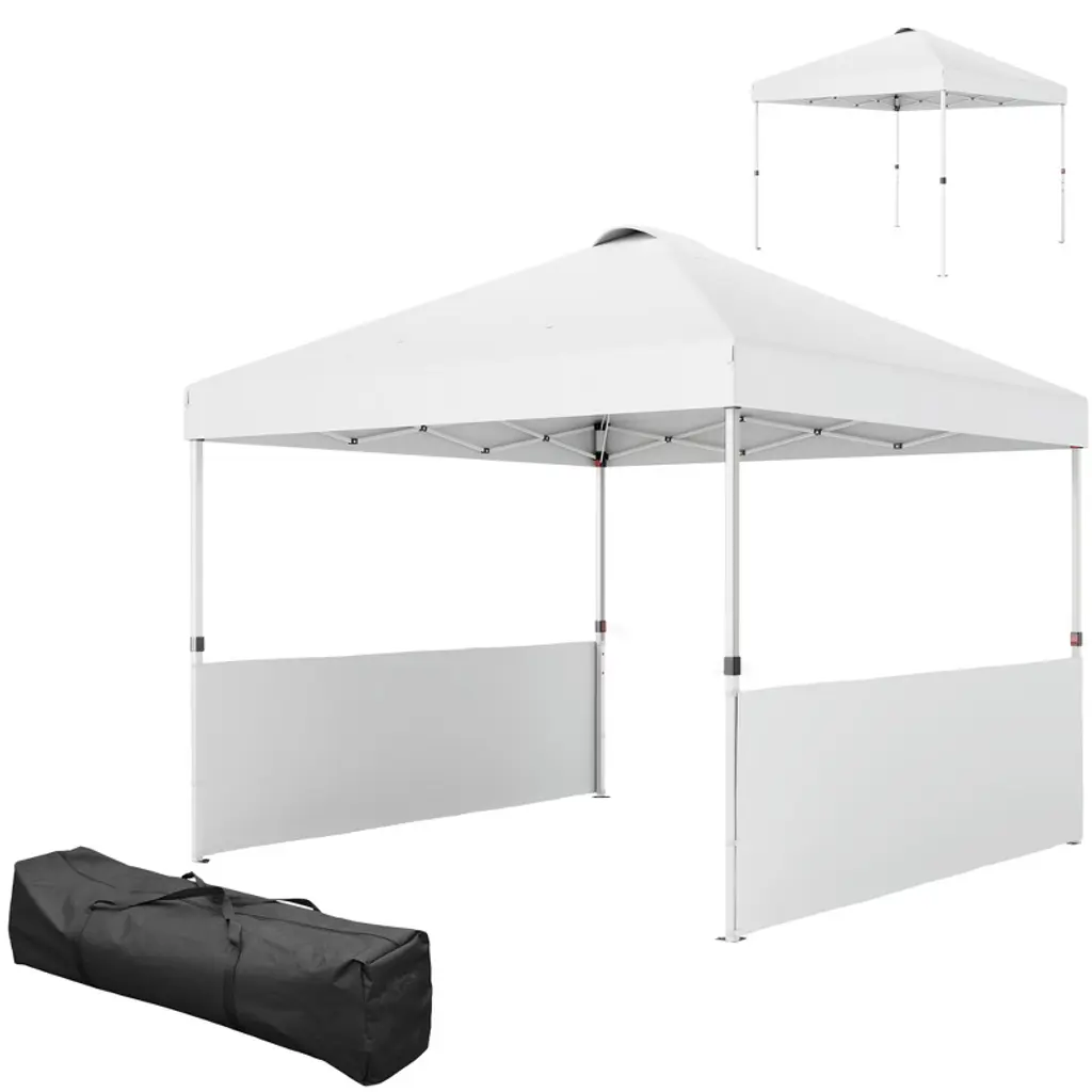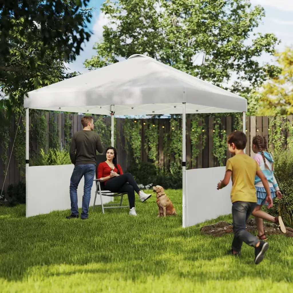 Outsunny 10' X 10' Pop Up Canopy Tent With 2 Half Sidewalls, Uv50+ Height Adjustable Instant Sun Shelter With Wheeled Carry Bag, White