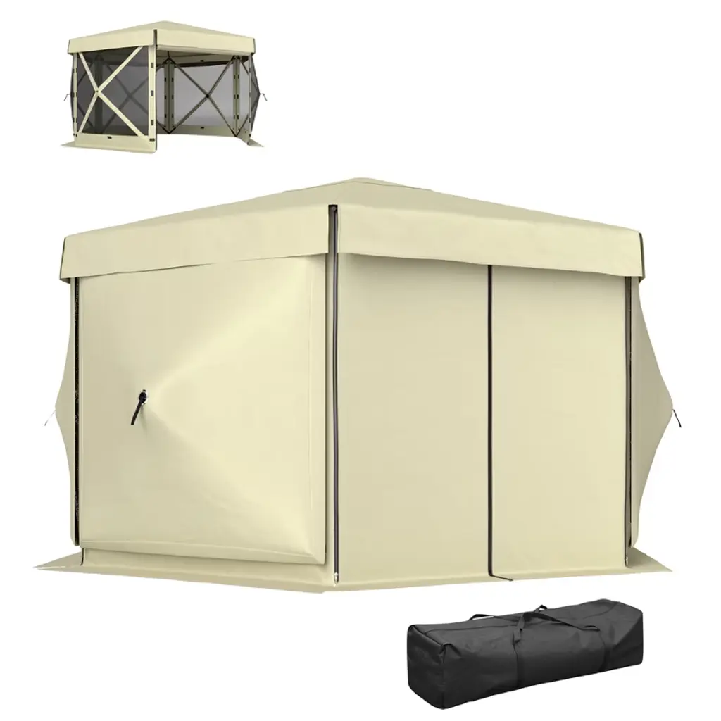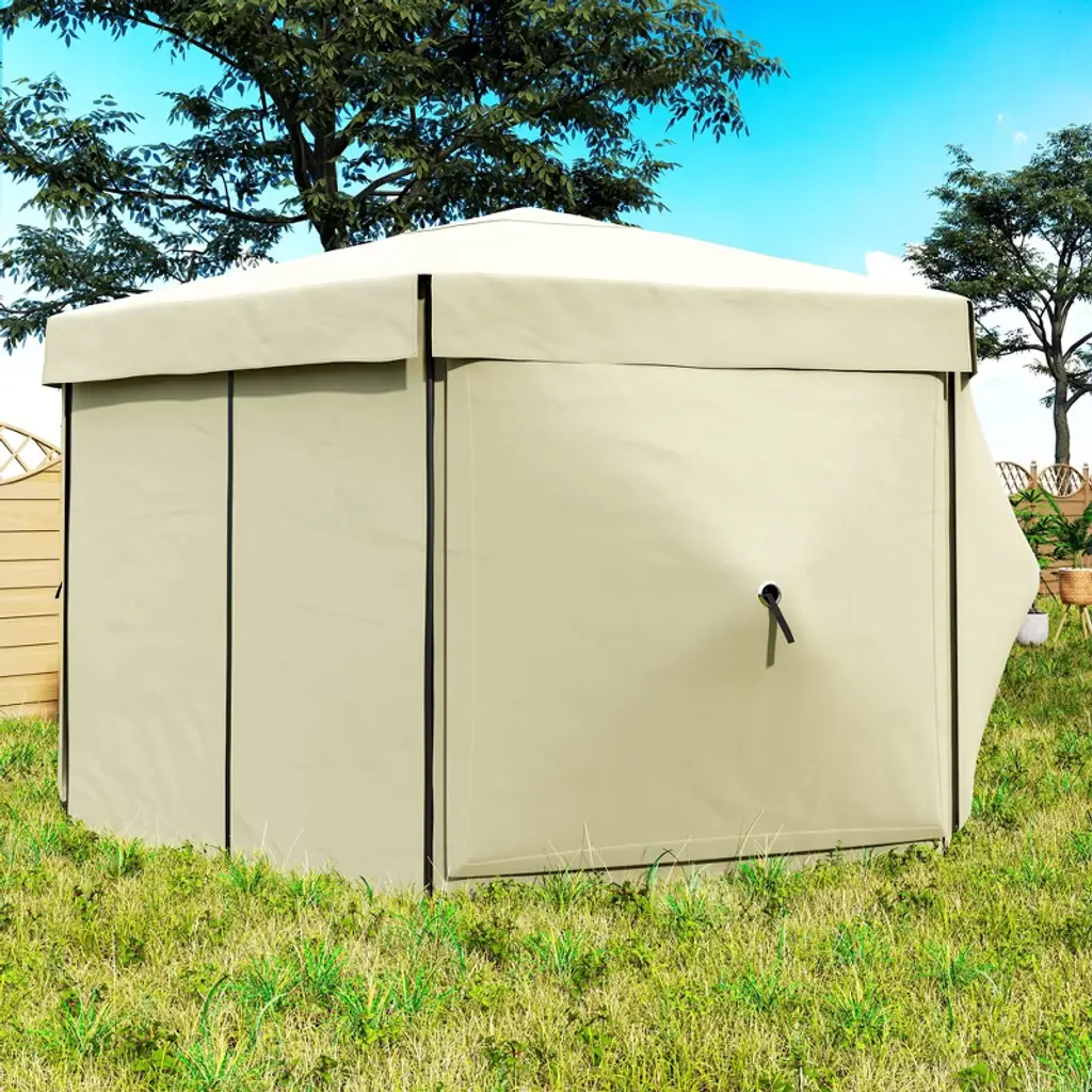 Outsunny 12' X 12' Hexagonal Pop Up Gazebo With 5 Sidewalls, Portable Outdoor Canopy, Beige