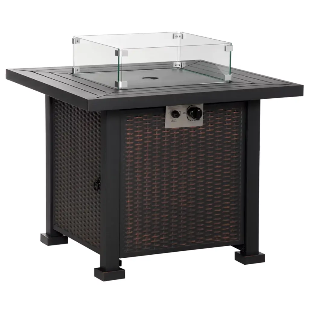 Enjoy the ultimate backyard ambiance year-round with this cozy and functional outdoor furniture from Outsunny that has both a fire pit and dining table together. It features a classic wicker design base that cleverly conceals the propane tank inside. Complete with a 50,000 BTU CSA-certified burner, you can enjoy all the pleasures of a charming flame without worrying about messy ashes. Whether it's on a porch, patio, or in your garden, our patio fire pit table makes a classy addition to your home.