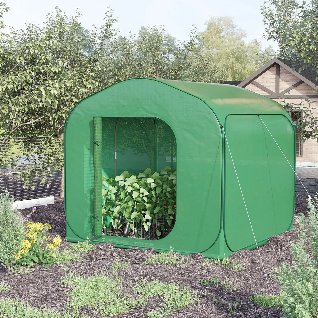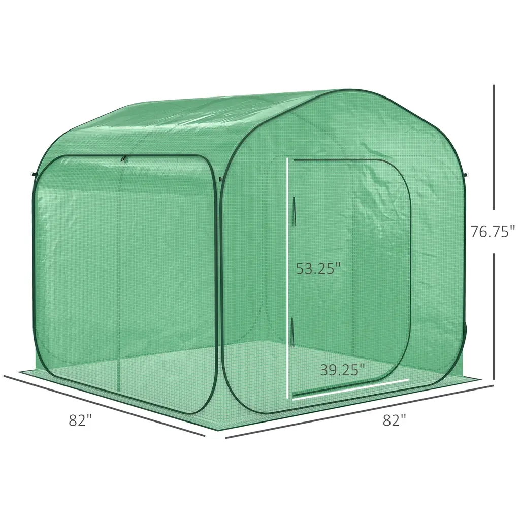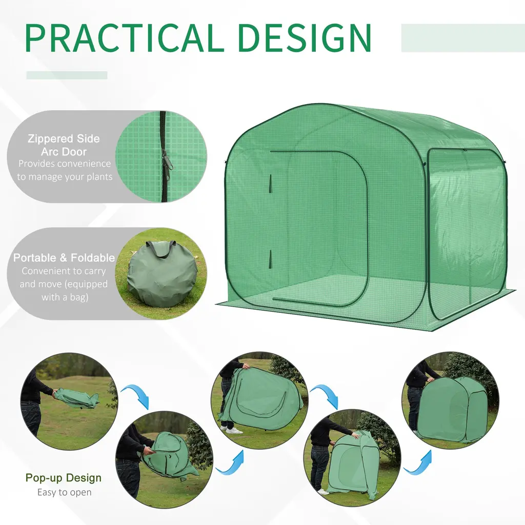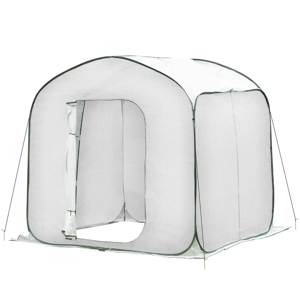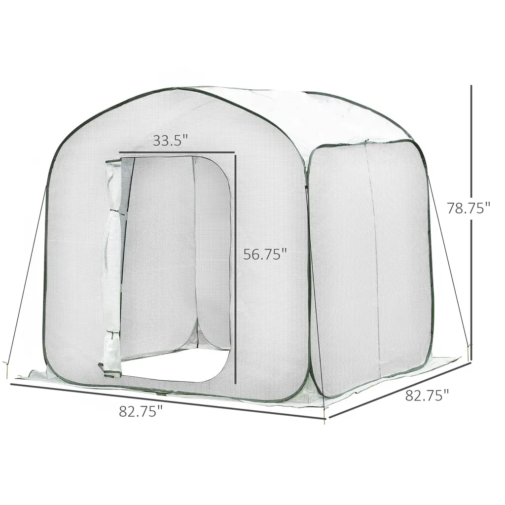 Outsunny 7' X 7' X 6' Garden Portable Greenhouse For Outdoors With Side Door & Portable Zipper Bag, Pop Up Greenhouse Tent - White