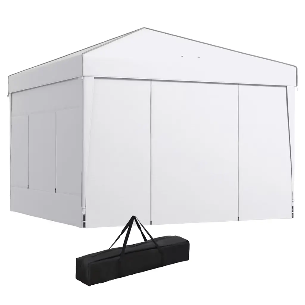 Outsunny 9.7' X 9.7' Pop Up Canopy With Sidewalls, Portable Canopy Tent With 2 Mesh Windows, Reflective Strips, Carry Bag, White