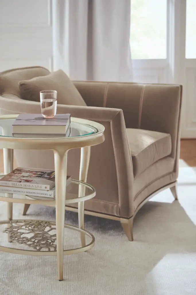 With three levels of luxury culminating in an artful visual, the Wild Flower makes a statement in any space. Gorgeous on every level, it features an oval metal frame enclosing a tempered-glass top as well as a second shelf below. Look all the way through and see the beauty of its third level proudly displaying a metal stretcher cut into a geometric floral pattern. Graceful cabriole legs support its open design and are highlighted with an Oracle finish. Place this lovely table next to your favorite sofa or chair to enjoy its multi-layered beauty.