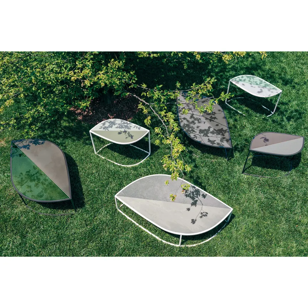 Imagine this collection as a leaf that falls from the trees and becomes a perfect accessory to the garden furniture: Leaf is a line of outdoor side tables designed to complement one another, creating a harmonious ensemble of different heights and hues of natural inspiration.