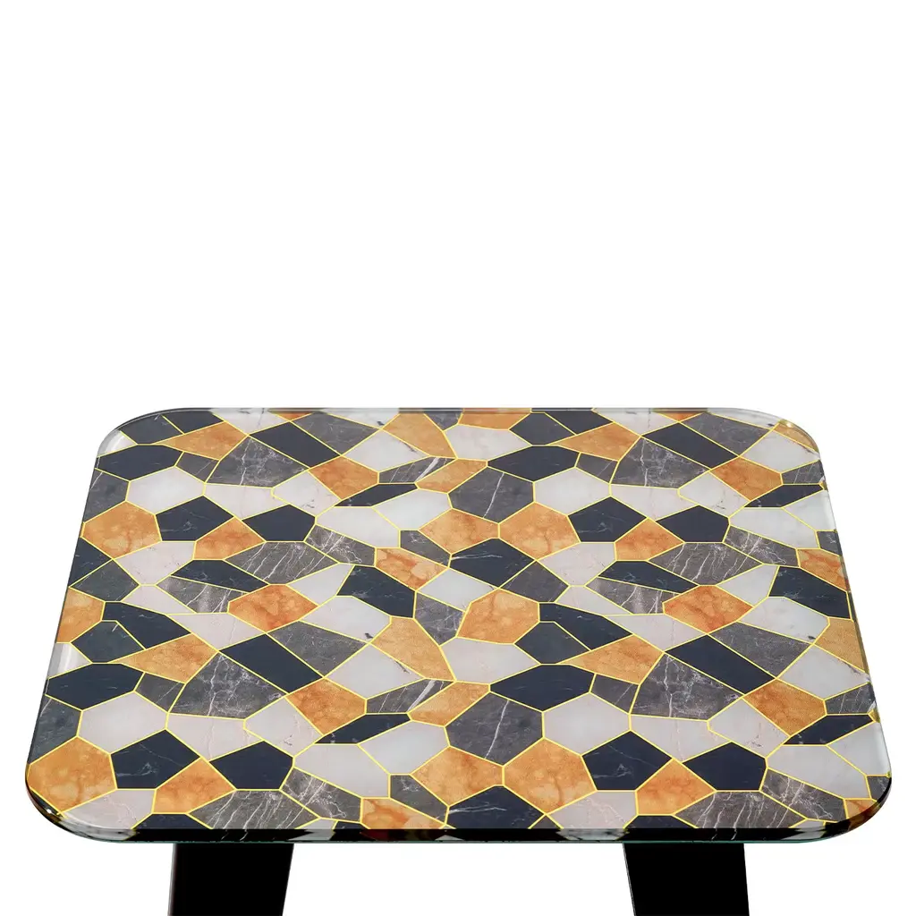 Eclectic and playful, this side table will be the perfect choice to enhance any modern interior with a charming and original style. An exquisite combination of materials, it rests on wooden legs finished with satin black metal lacquer and boasts a strikingly patterned top made of Vetrite, a Sicis-patented glass composite of special polymers. Available in a version with polished legs upon request to the Concierge.