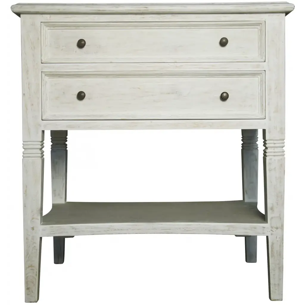 Intriguing design elements, like decorative carving atop tapered legs and two slim drawers, elevate the traditionally inspired lines of this artisan crafted solid mahogany side table. Available in three finishes, each was chosen to highlight the hardwoodsÕ natural grain.