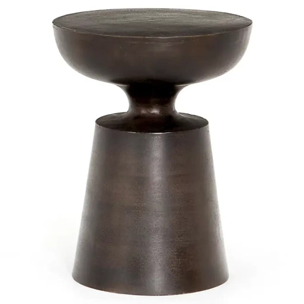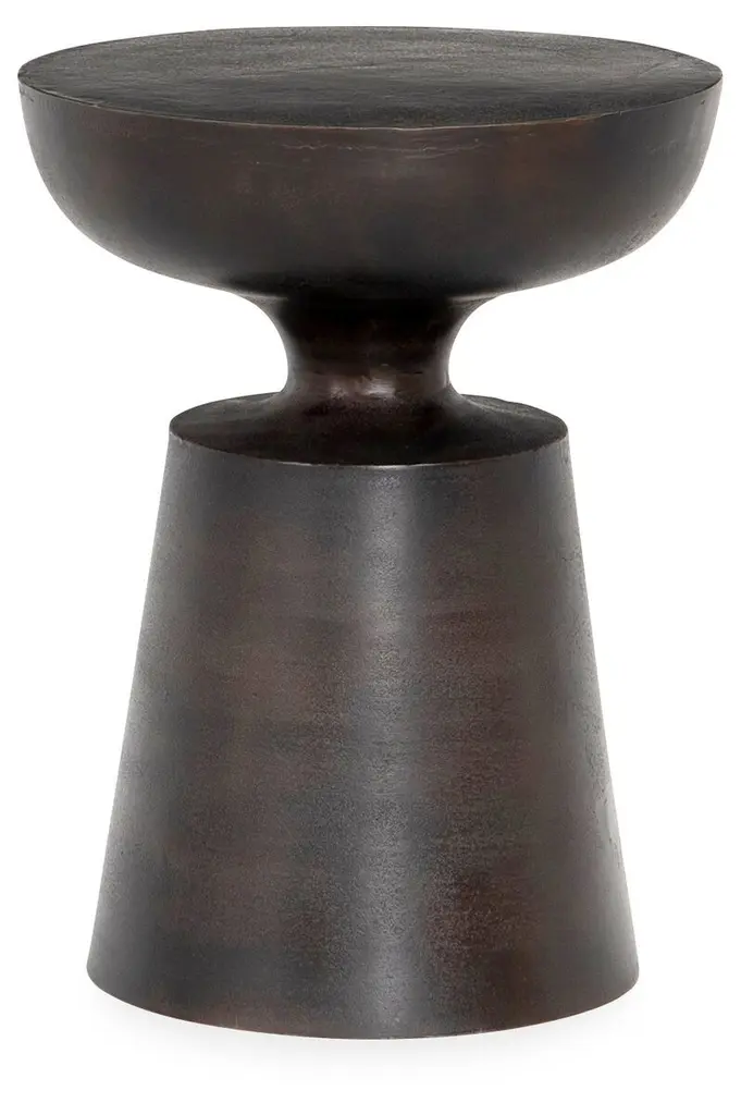 With its sculptural shape and rich antique rust finish, the Ozera end table offers the perfect blend of form and function. Crafted from aluminum, this versatile piece pairs effortlessly with any seating area in your home, whether indoors or outdoors.